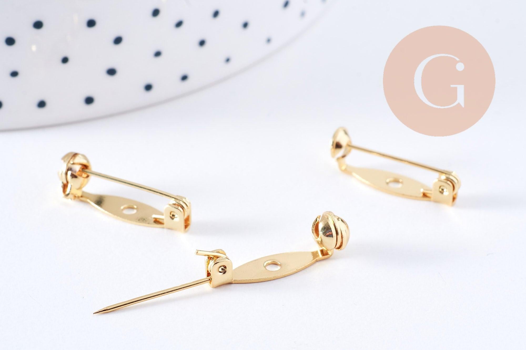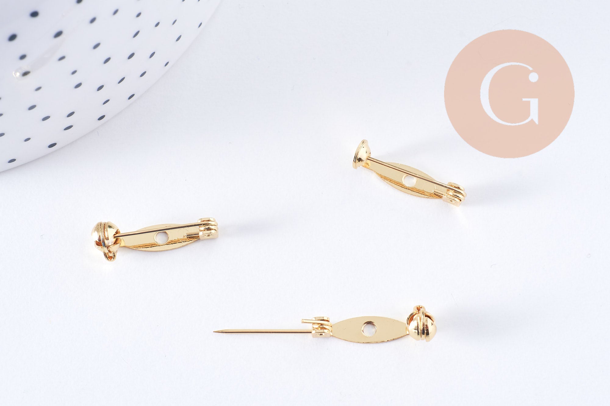 Un accesorio esencial para sus creaciones de broches de bricolaje, estos soportes de broche de latón de alta calidad están chapados en oro genuino de 18 quilates.