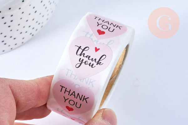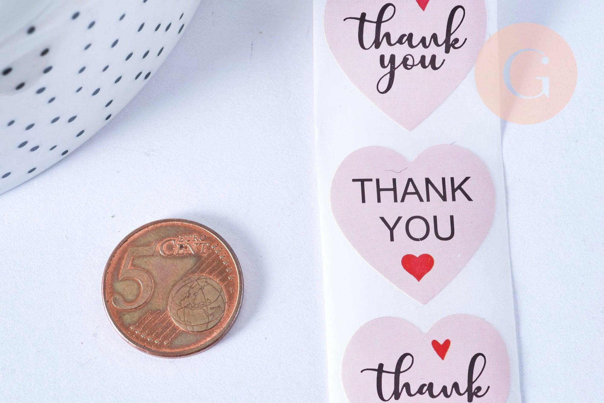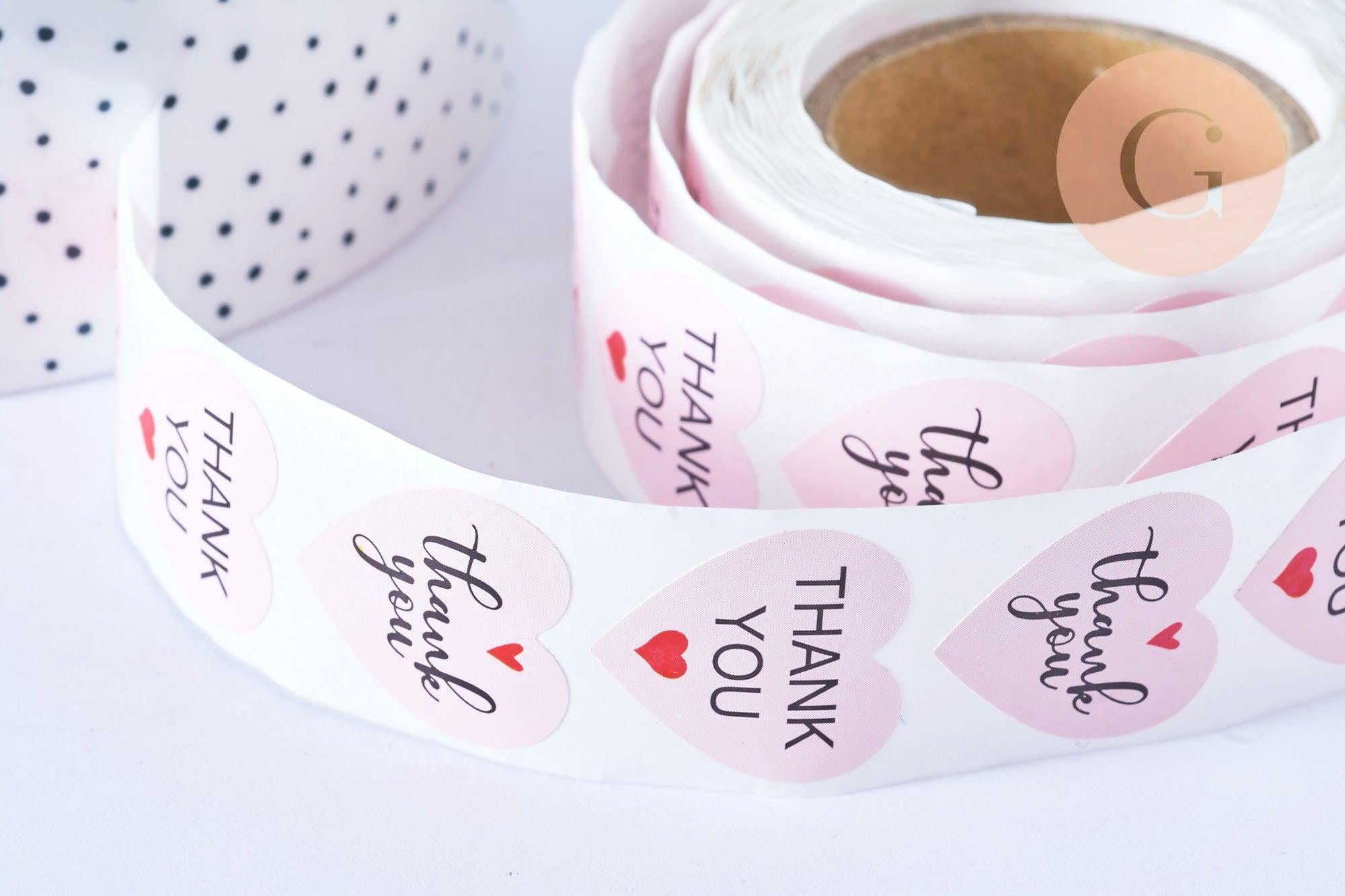 Pegatinas de agradecimiento de corazón rosa para preparar paquetes de regalo, envolver regalos, bolsas de boda, agradecimientos, rollo de 500 pegatinas