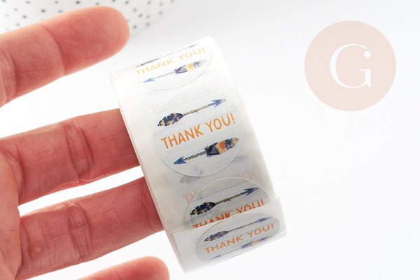 Pegatinas redondas flecha de agradecimiento 25 mm, x500 (G5115)