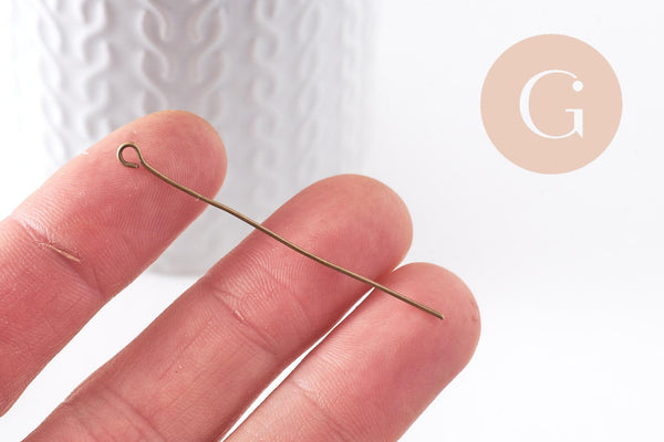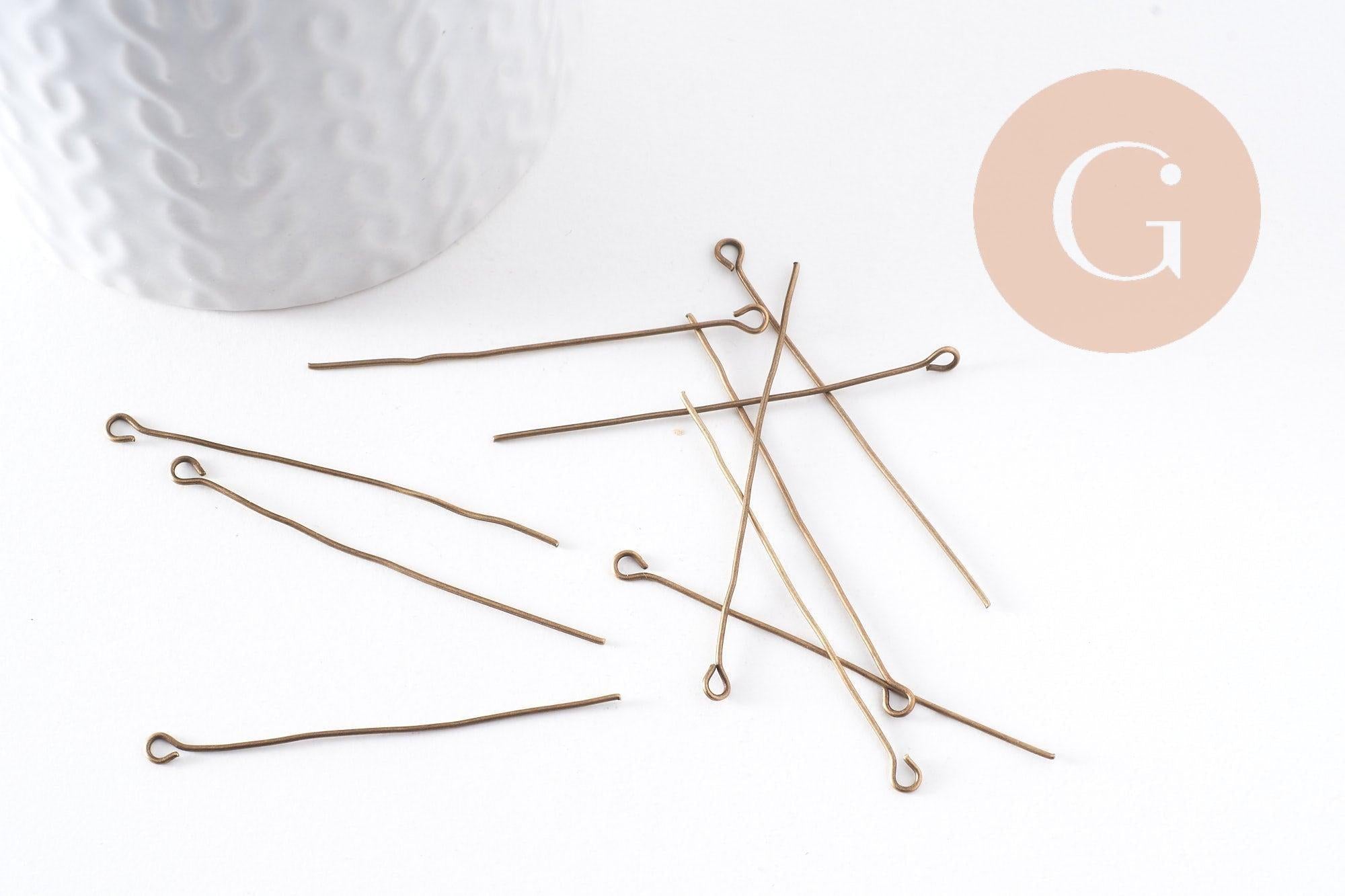 Estos pernos prisioneros de hierro de bronce de 50 mm con cabeza de bucle son el artículo perfecto para hacer sus joyas de bricolaje . Gracias a su cabeza en forma de bucle, podrás usarlos fácilmente para colocar colgantes, cuentas o crear aretes .