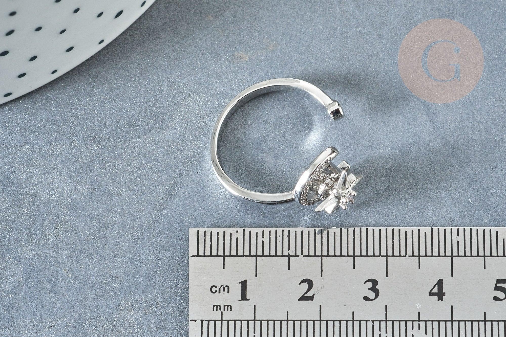 Bague réglable rotative lune étoile laiton platine zircon blanc 16.9mm, x1 (G8031)
