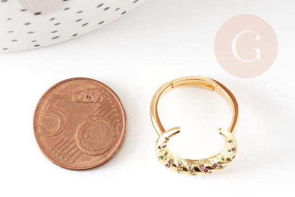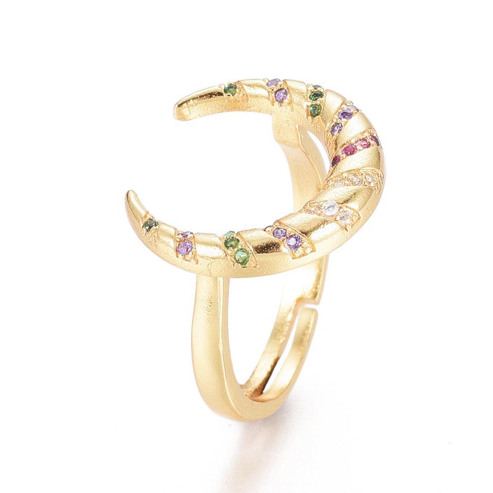 Anillo de latón bañado en oro con luna de circonitas de colores, creación de joyas, anillo de mujer regalo de cumpleaños, soporte de anillo de latón bañado en oro, 16,5 mm, unidad