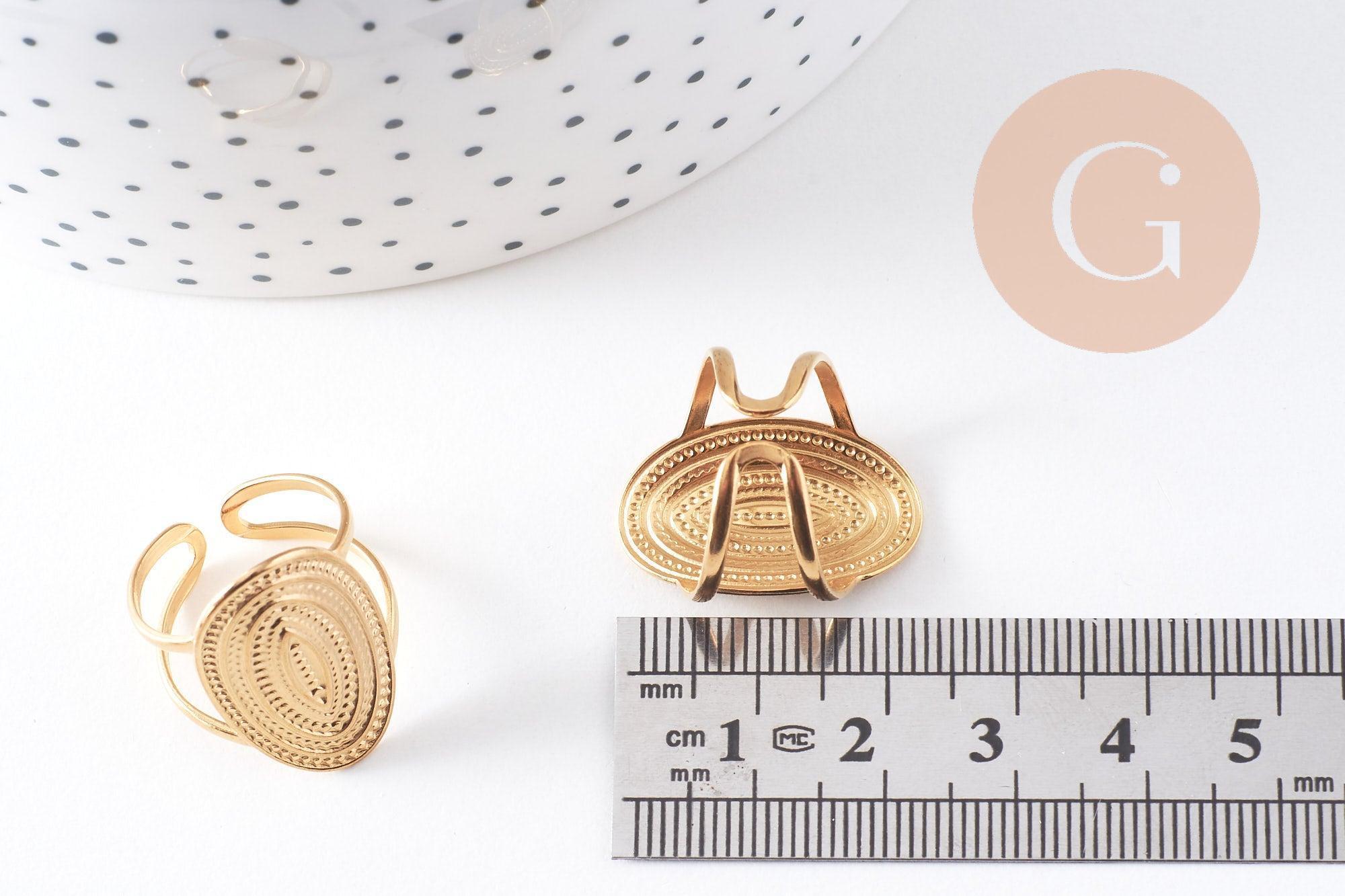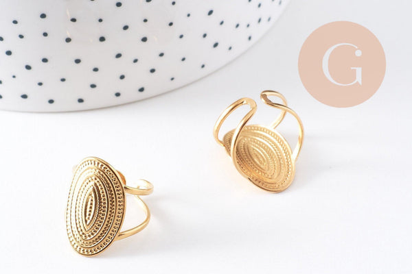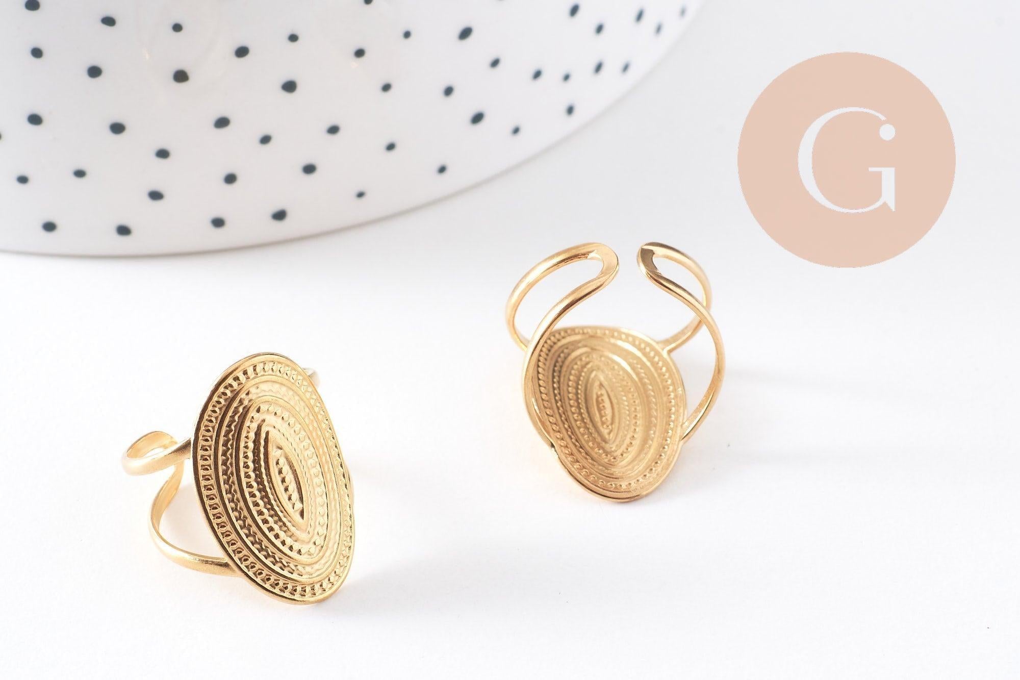 Aporta un toque de elegancia moderna a tus creaciones DIY o colección personal con este anillo ajustable ovalado texturizado en acero inoxidable dorado 304 . Su textura martillada le da un aspecto chic y artesanal, perfecto para realzar las manos día tras día.