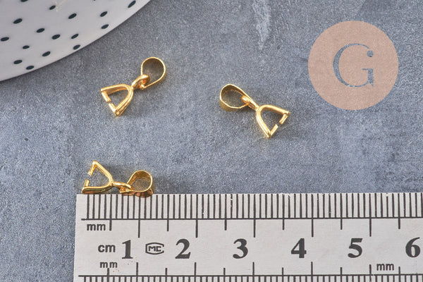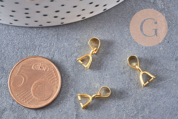 Pinza de latón dorado, su acabado es perfecto gracias a su diseño en forma de concha y su anilla integrada.