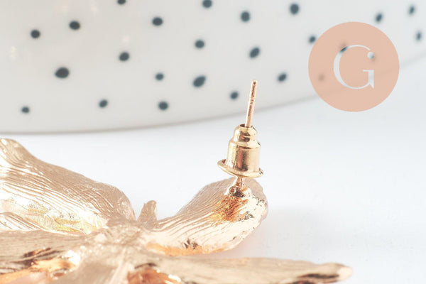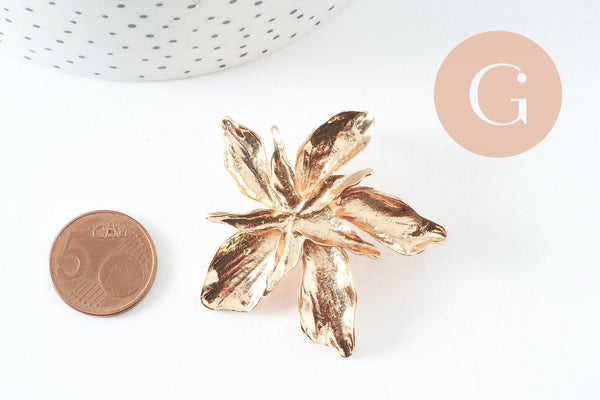 Añade un toque de refinamiento y modernidad a tus creaciones con estos elegantes pendientes XXL en forma de flor en zamac bañados en oro.