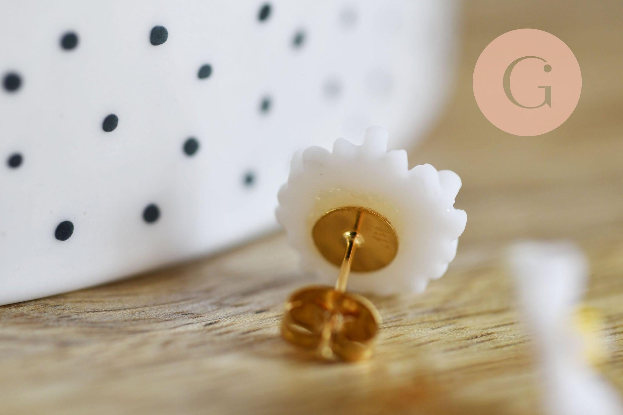 Boucles puces acier doré marguerite blanche résine 13mm, la paire (G7247)