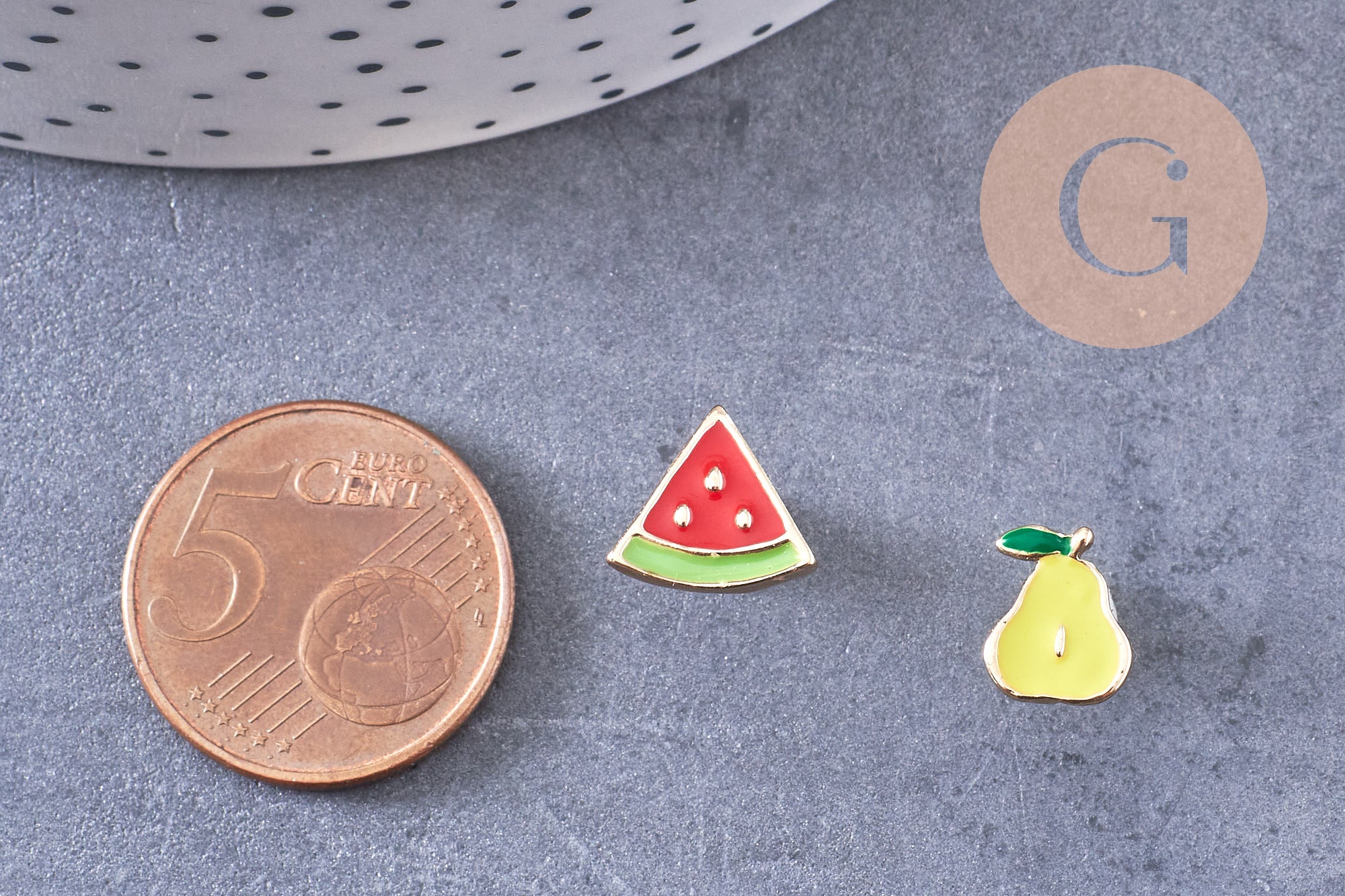 Dale un toque de fantasía y color a tus creaciones con este juego de aretes con forma de fruta : manzana, sandía y pera. ¡Un formato mini y adorable que encantará a grandes y pequeños!