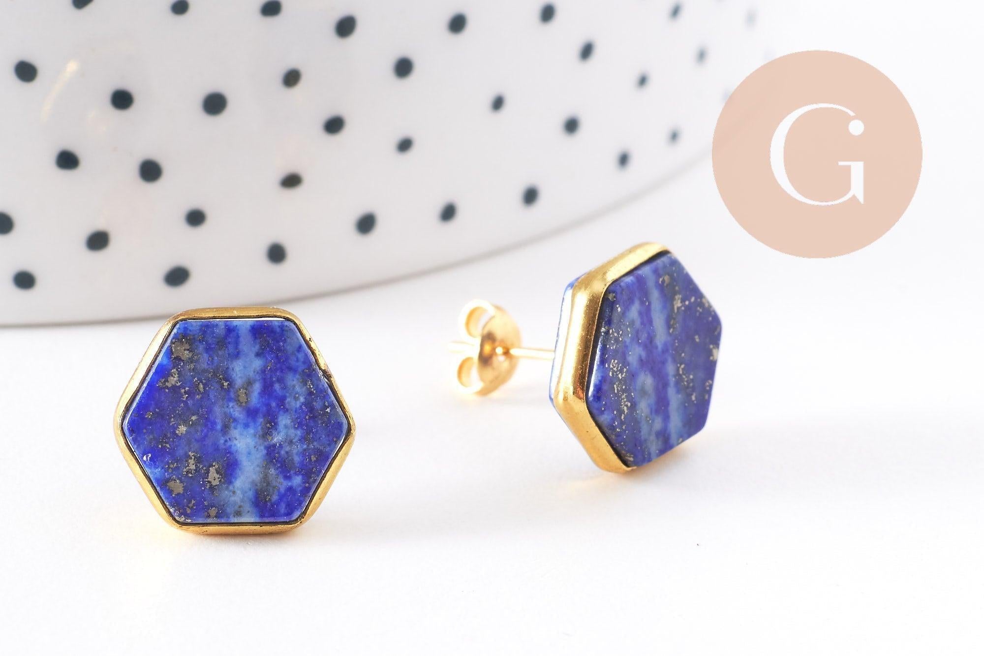 Pendientes de oro de 18 quilates con lapislázuli, joyas de oro, artículos para manualidades, pendientes de lapislázuli, pendientes de piedra natural, par