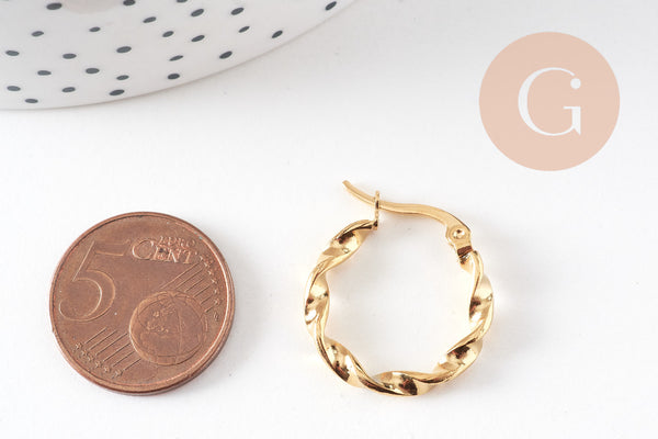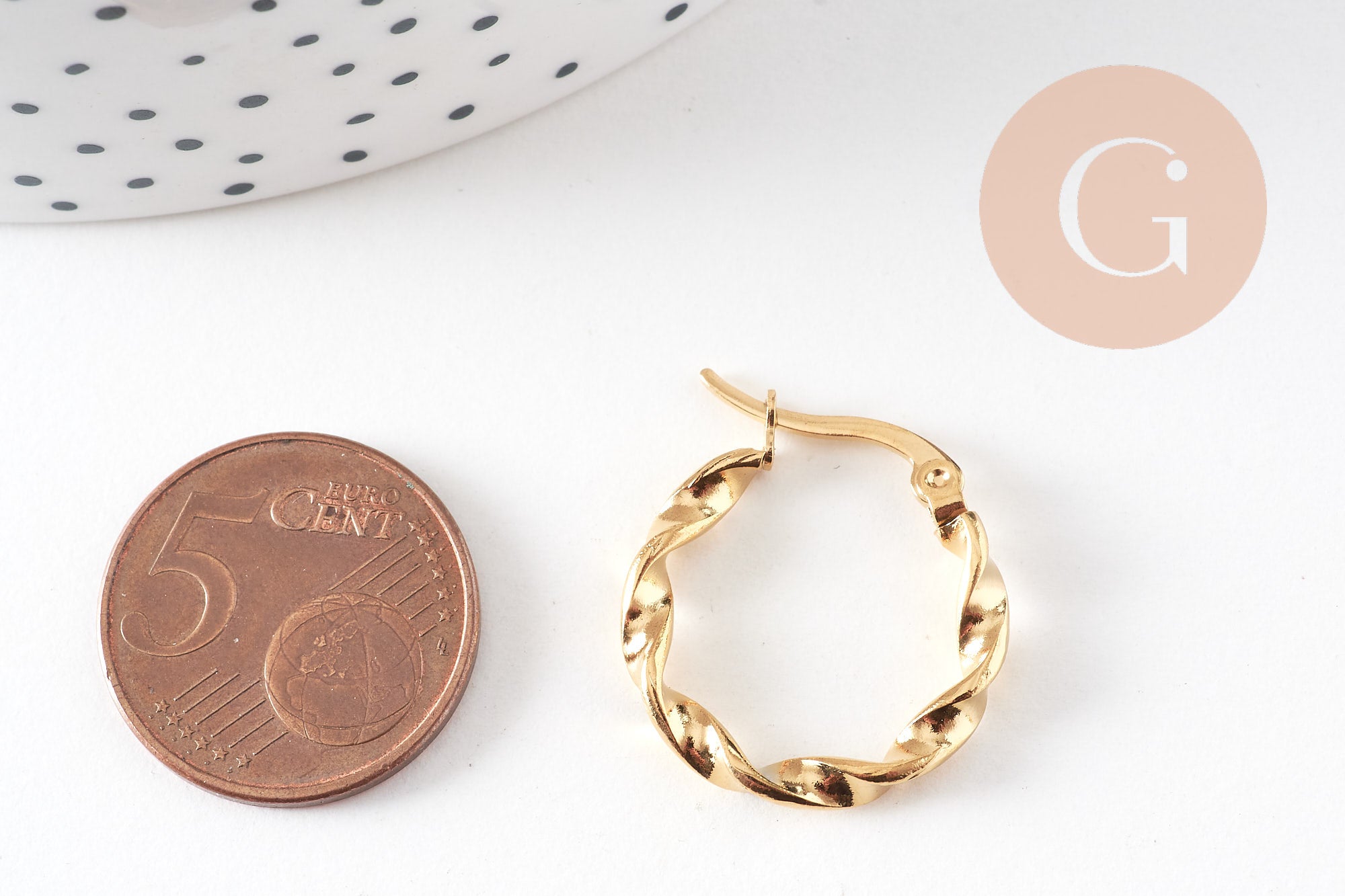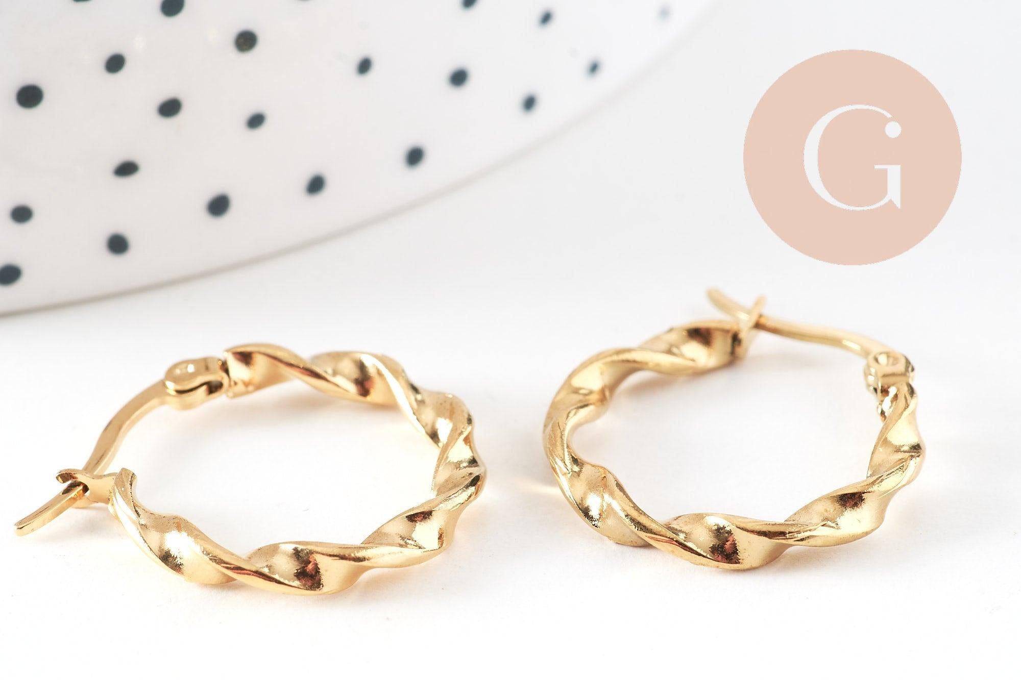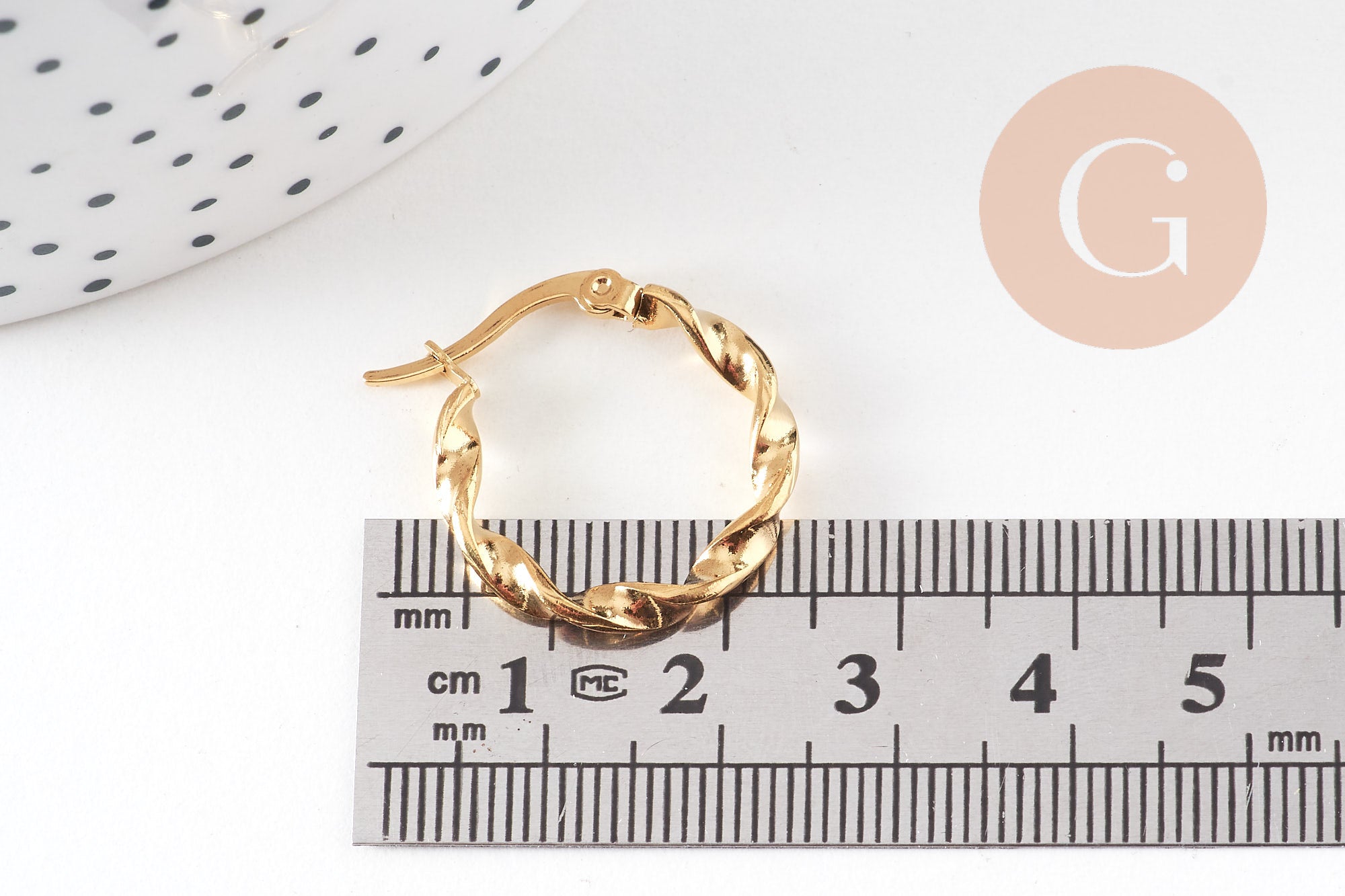 Pendientes de aro de acero dorado trenzado, para oreja perforada, sin níquel, con aros de acero, 21 mm, par (G0599)