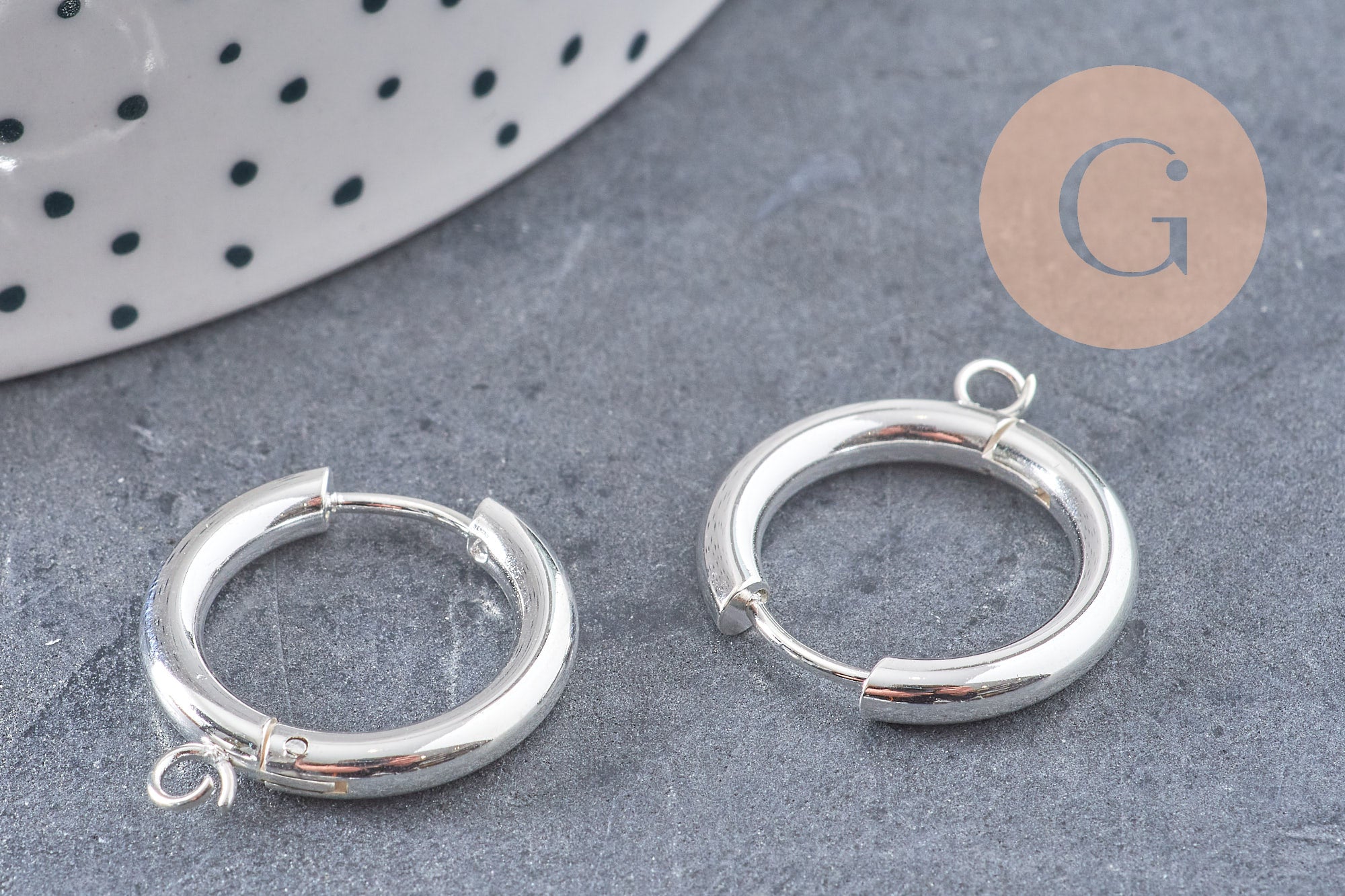 Pendientes de aro + anillo en acero inoxidable 201-316, acabado plateado, 22 mm, par (G10857)