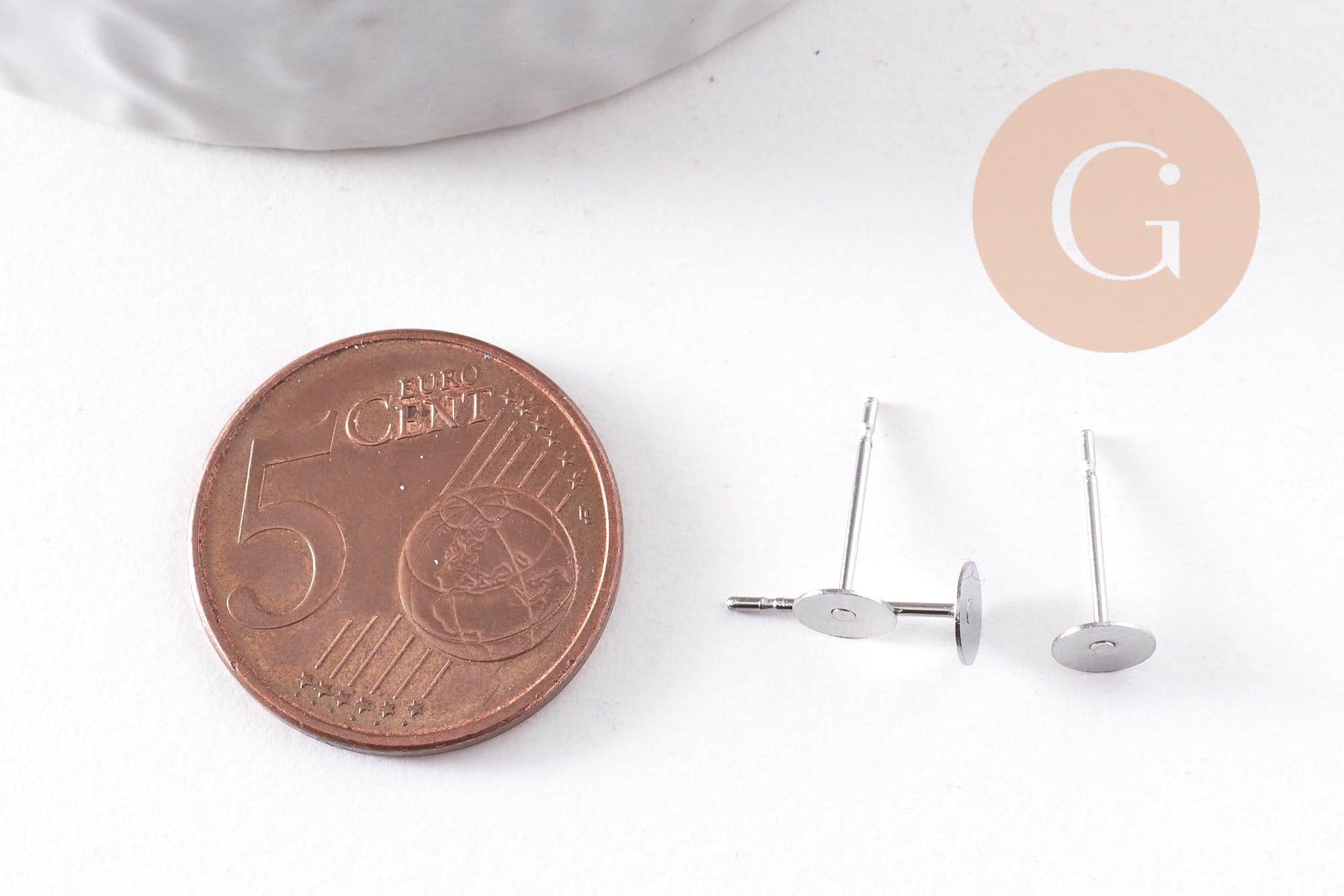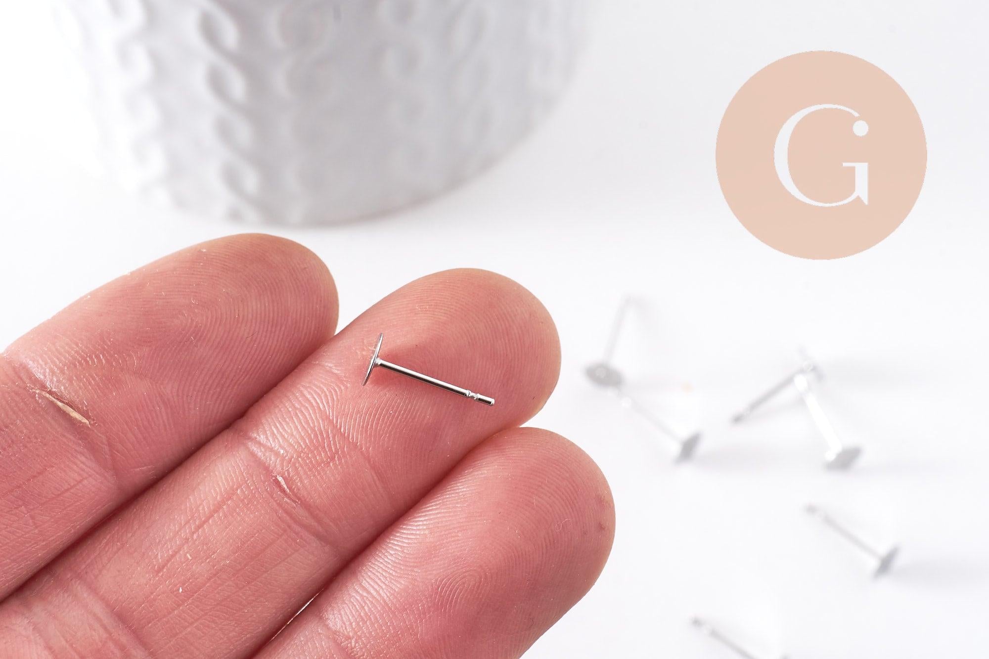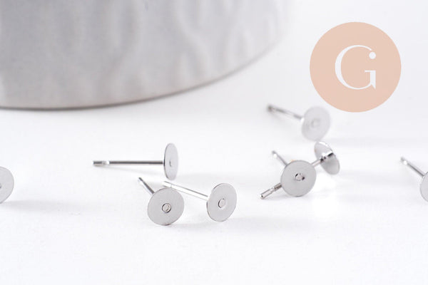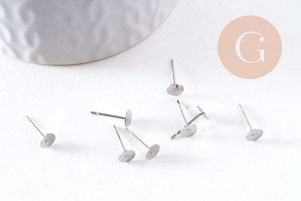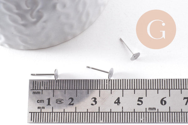 Clous-puces oreille acier inoxydable 316 platine 5mm, x50 (G10171)