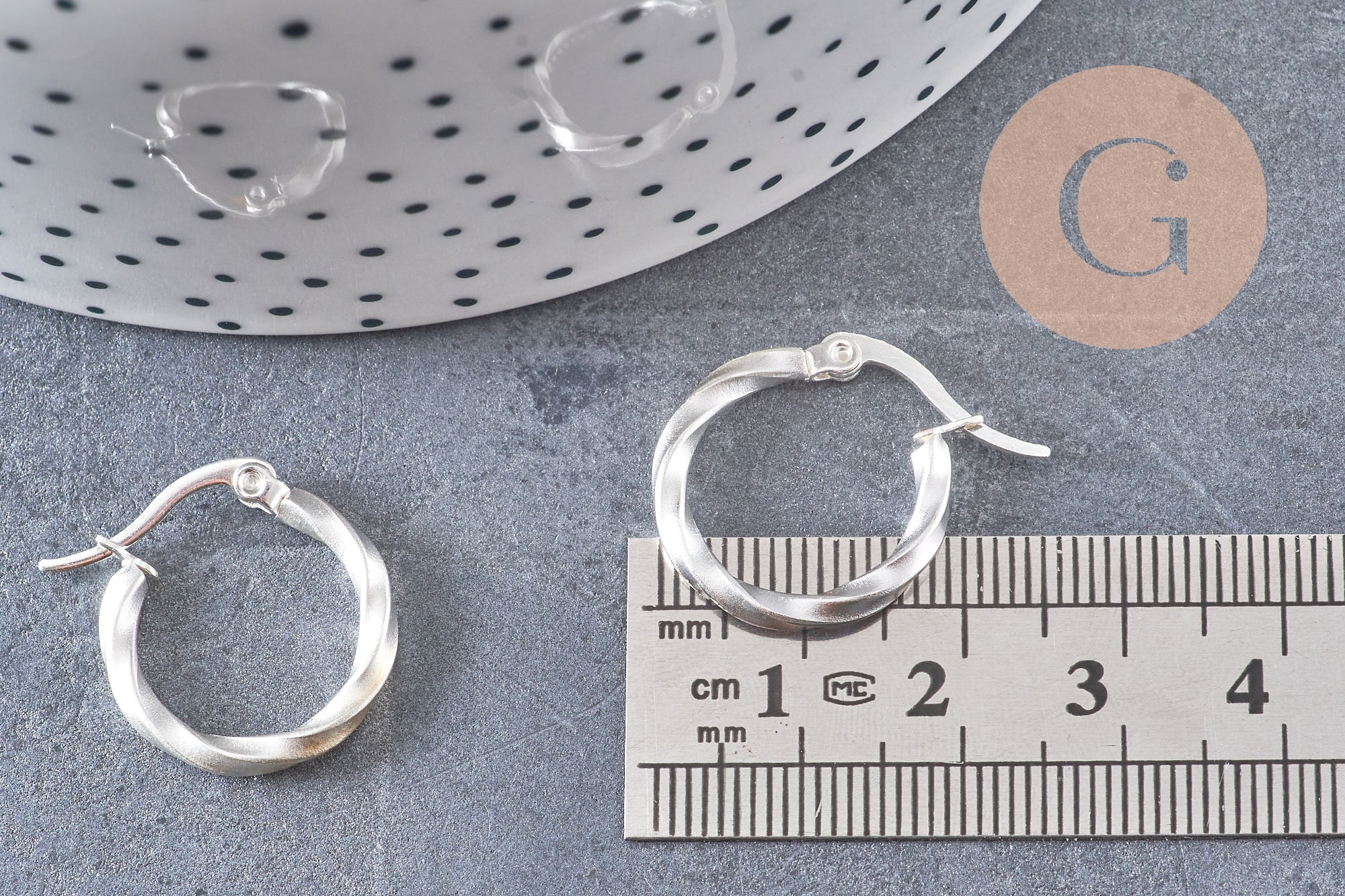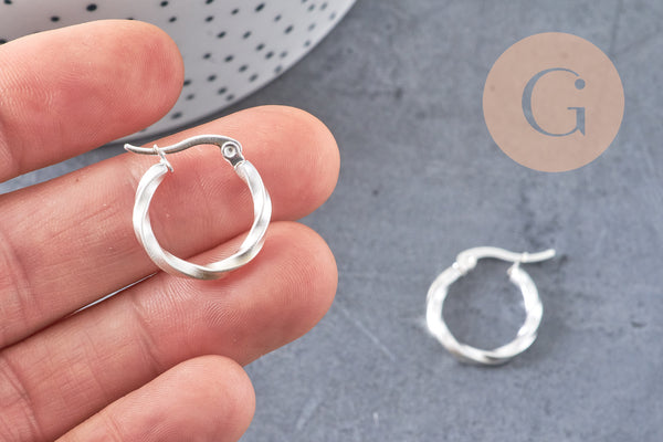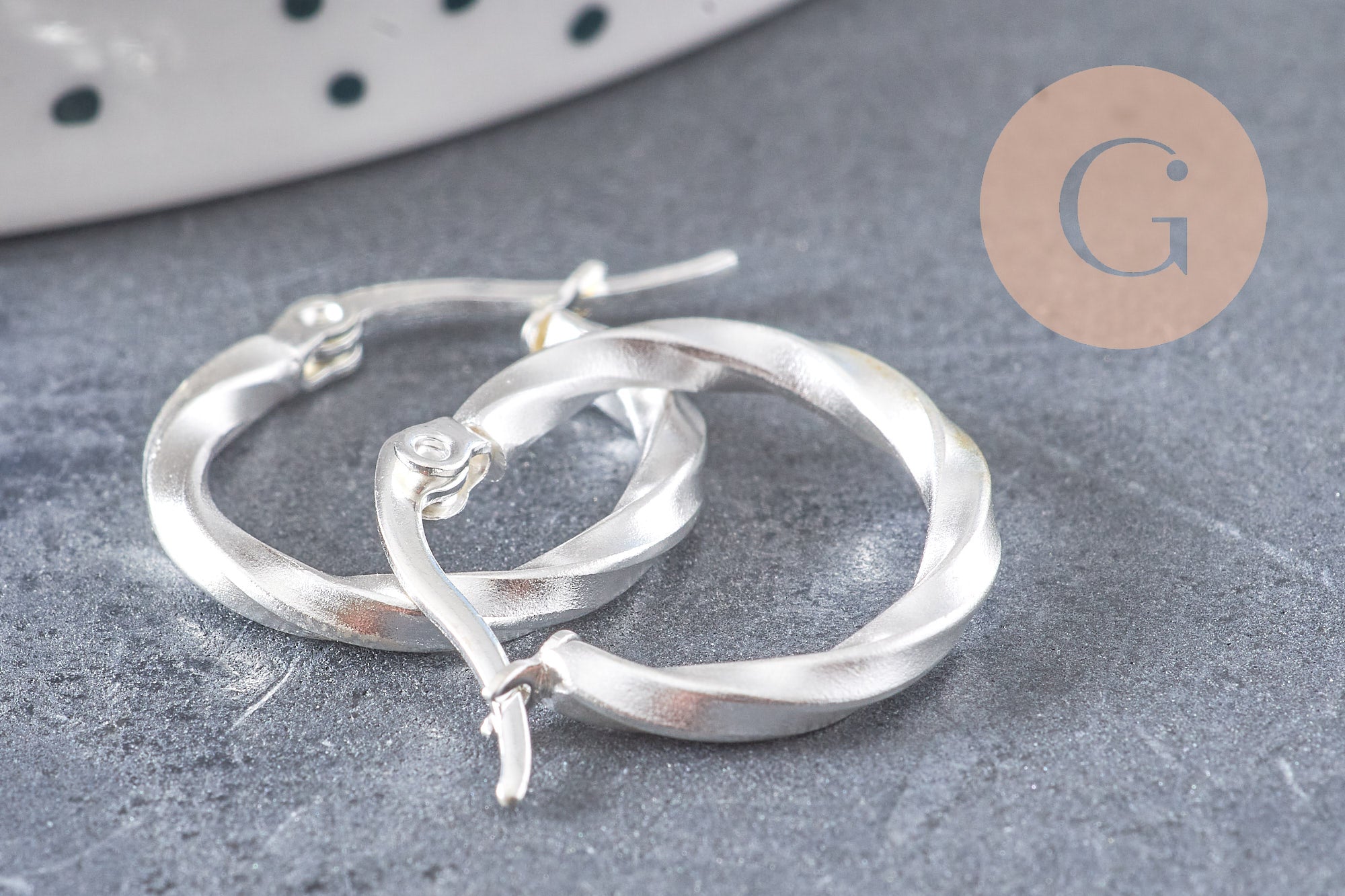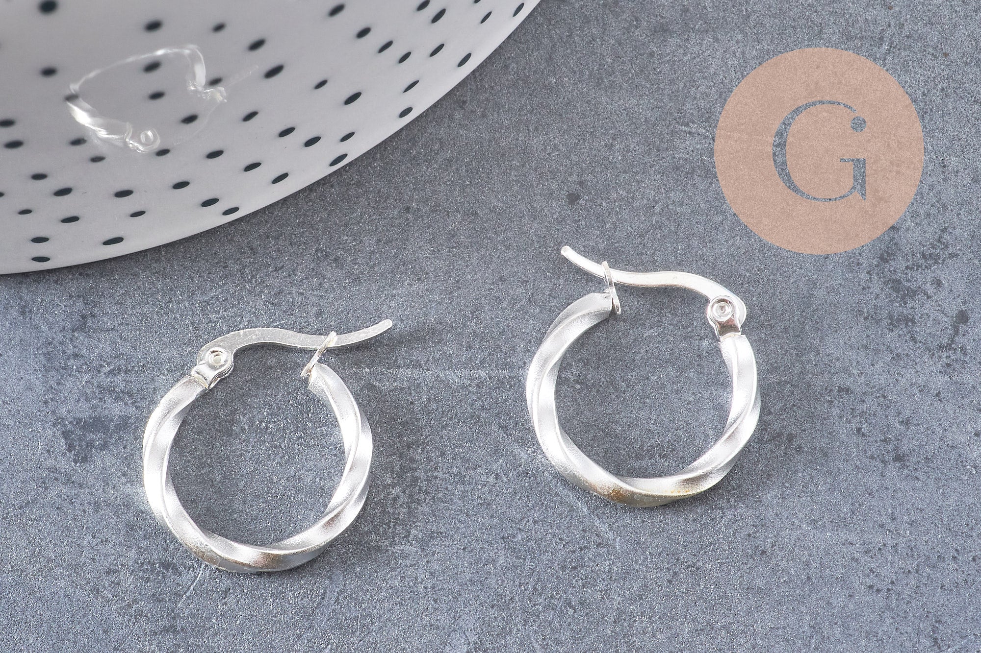 créoles torsadées acier argenté 21mm, x2 (G6807)
