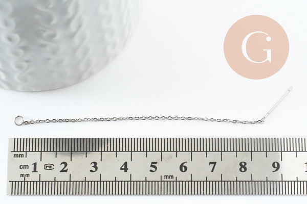 Support boucles tige sur chaine forçat acier 304 inoxydable platine 98mm, x2 (G9680)