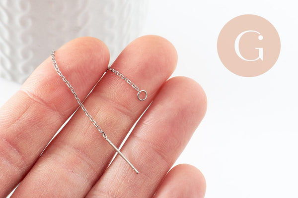 Cada soporte para pendientes está equipado con un poste para insertar fácilmente el pendiente en el orificio de la oreja. La cadena de cable añade un toque de elegancia y movimiento a tus creaciones, mientras que el anillo ofrece la posibilidad de añadir elementos adicionales para personalizar tus pendientes.