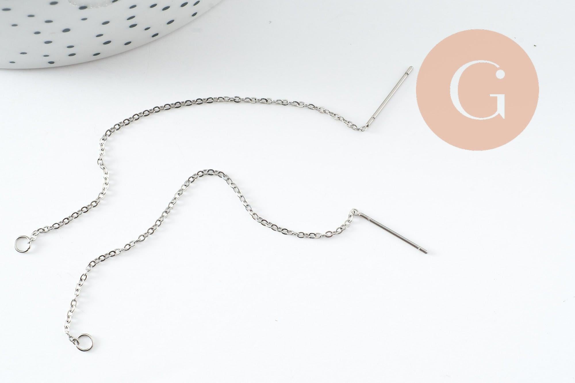 Cree aretes largos y elegantes con estos soportes para aretes de cadena , hechos de acero inoxidable 304 con acabado platino . Su diseño fino y aireado aporta un movimiento delicado a la joyería, perfecto para creaciones modernas, minimalistas o sofisticadas .