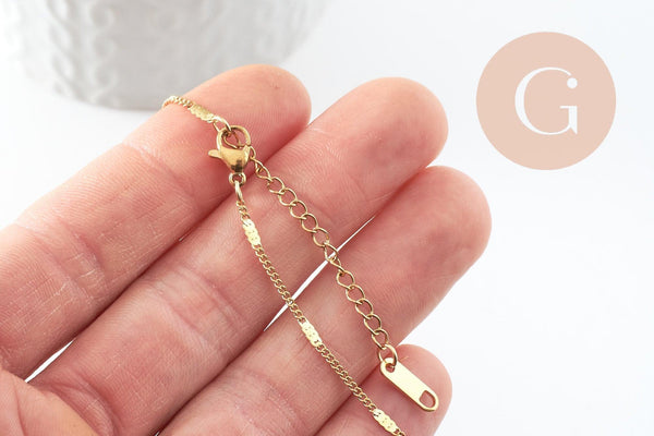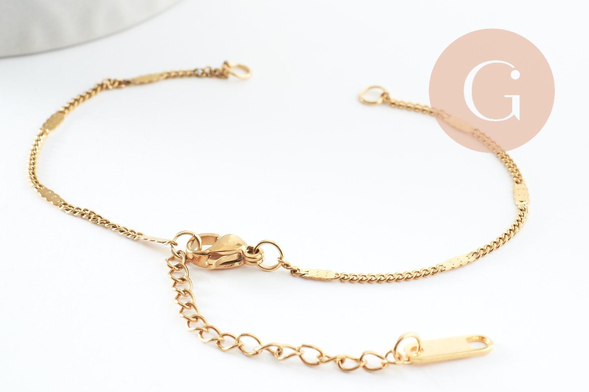 Esta pulsera, sencilla y original, está muy de moda y te permitirá crear bisutería en tan solo unos minutos. Su sencillez y modernidad la convierten en una joya atemporal, mientras que su robustez, gracias al acero inoxidable dorado , le confiere una vida útil prolongada.