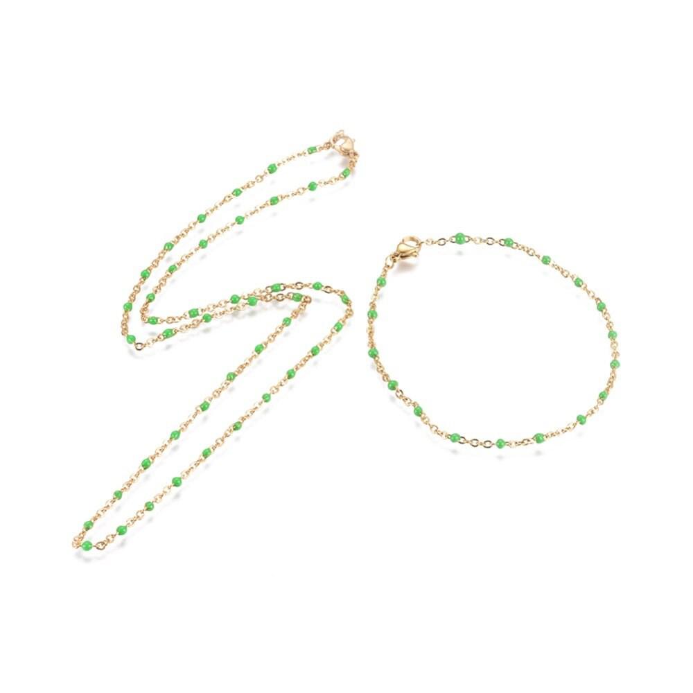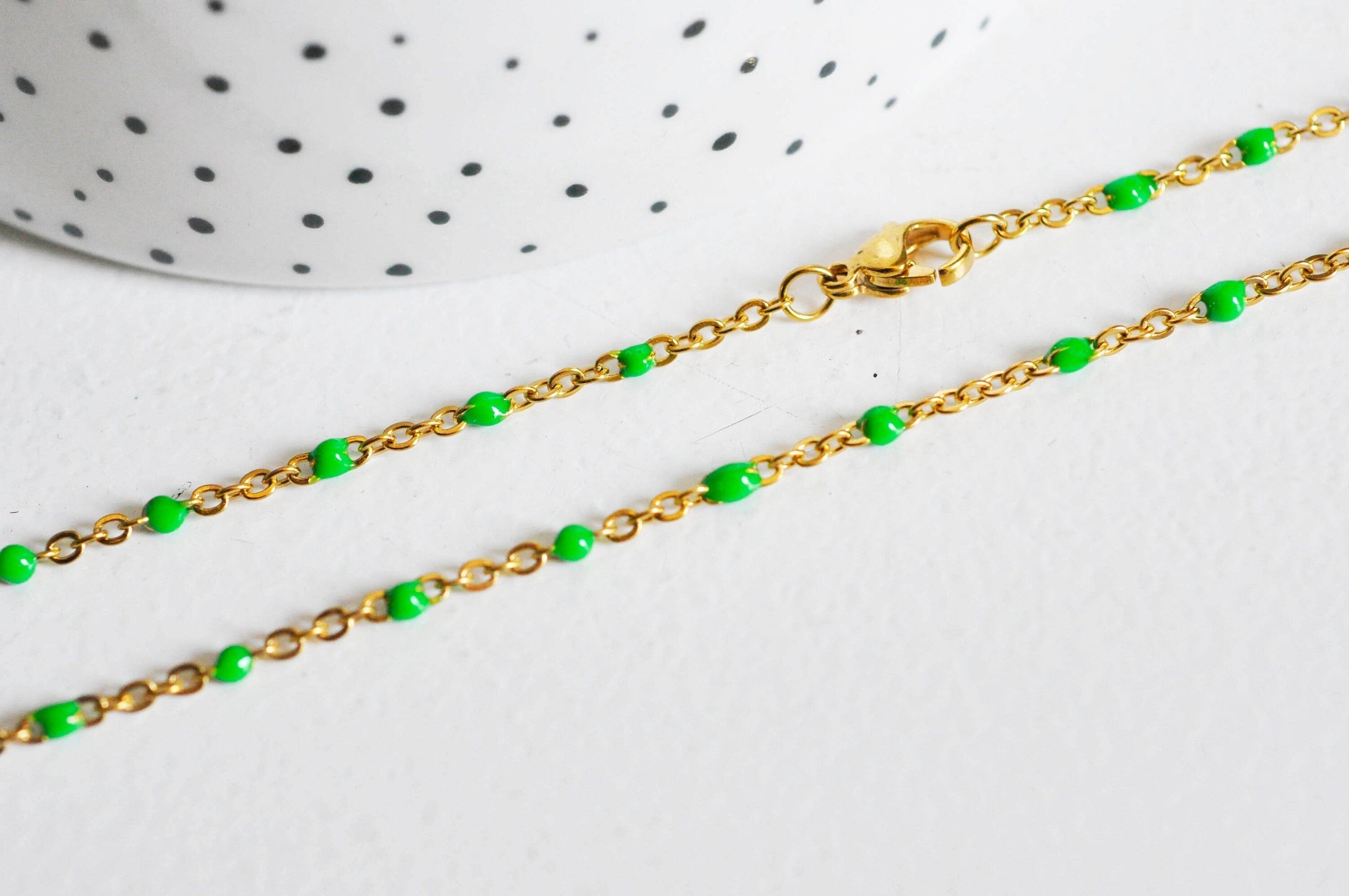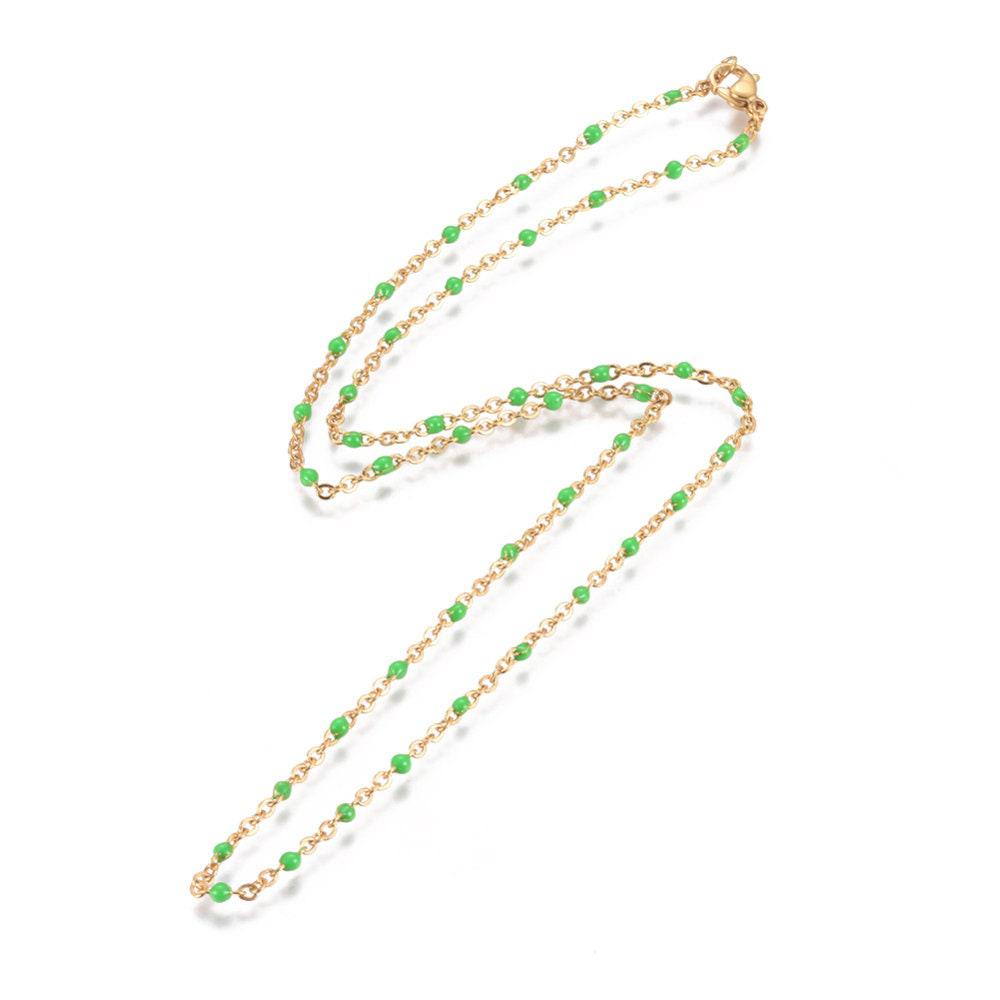 Pulsera o collar EP Cadena de oro de resina verde de acero bañado en oro de 14k, pulsera de cadena fina, creación de joyas, 1,5 mm, 20,5 cm, x1 G3600