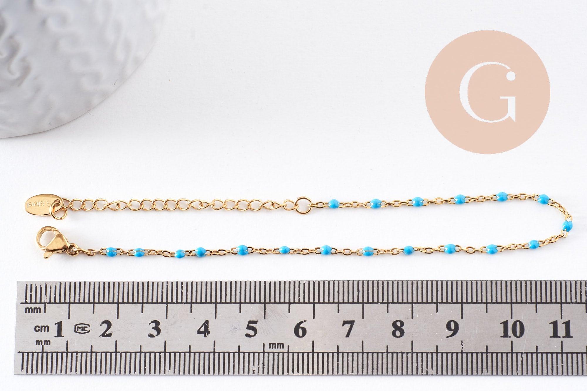 Aporta una nota fresca y colorida a tus creaciones con esta pulsera de acero inoxidable bañada en oro de 14K , adornada con una fina cadena de resina turquesa . Listo para usar, permite crear fácilmente joyas DIY modernas y luminosas.
