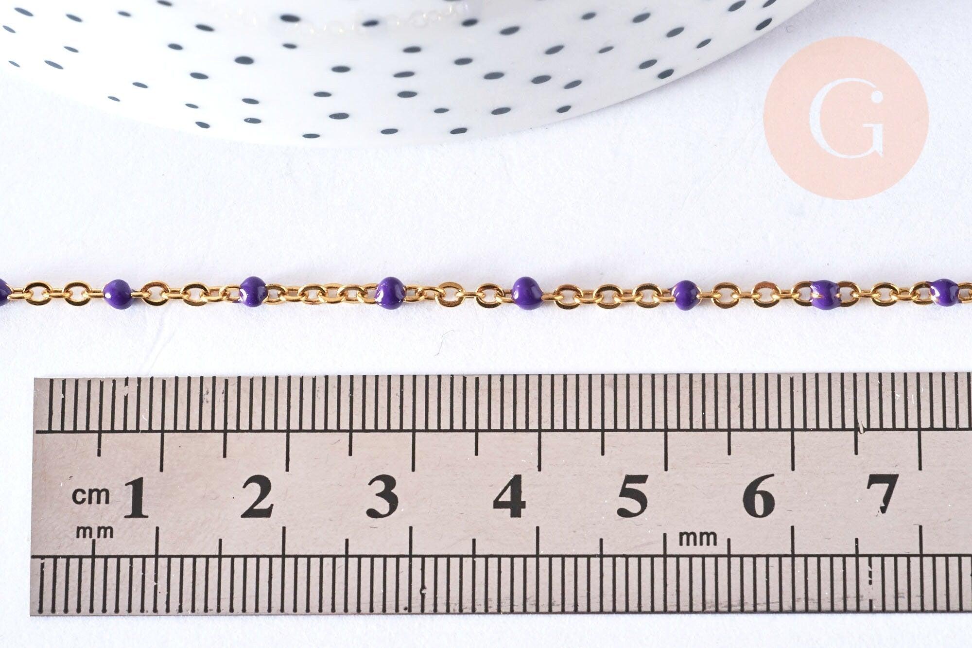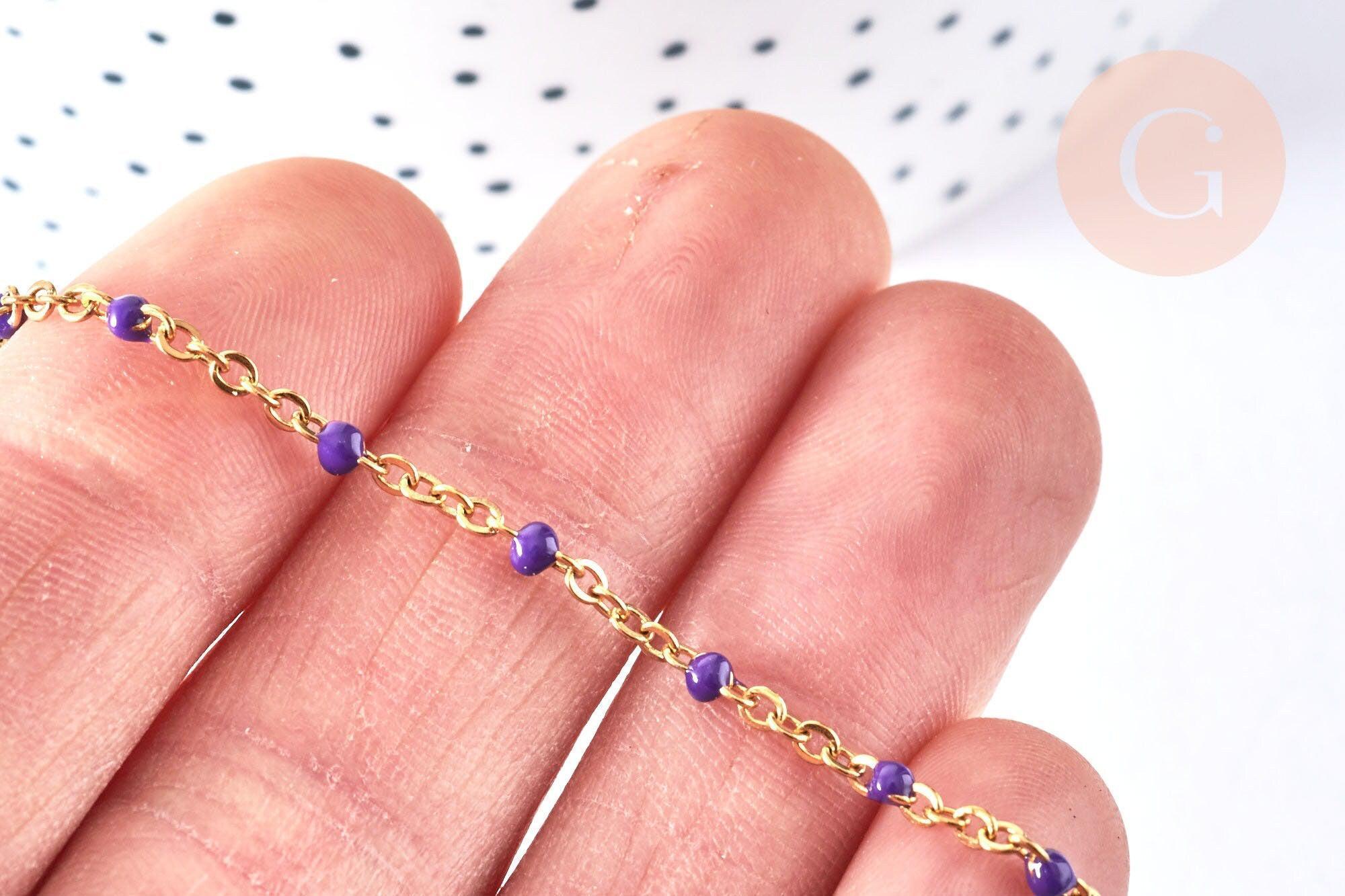 Aporta un toque de misterio y elegancia a tus creaciones DIY con esta pulsera o collar de acero inoxidable bañado en oro de 14 quilates , revestido de resina de color morado intenso . Su color vibrante combina maravillosamente con el oro para una apariencia elegante y moderna.