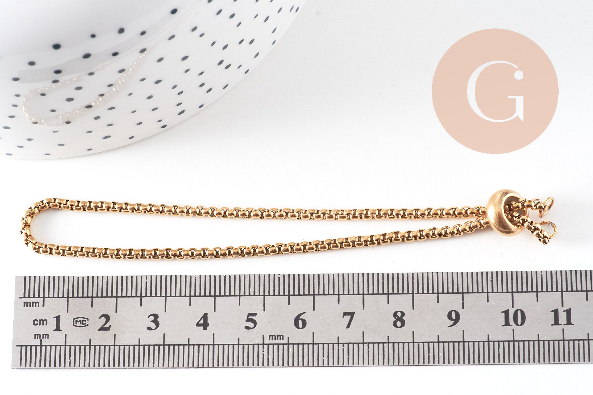 Pulsera ajustable de malla enrollable con cierre deslizante en acero inoxidable 304 y oro de 14 quilates, 24 cm, x1 (G0188)