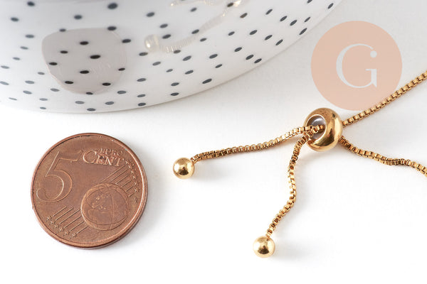 Pulsera ajustable con base de acero chapado en oro de 14k y cadena veneciana de 22 cm. Joyería sin níquel. Pulsera de acero inoxidable. x1 G5686