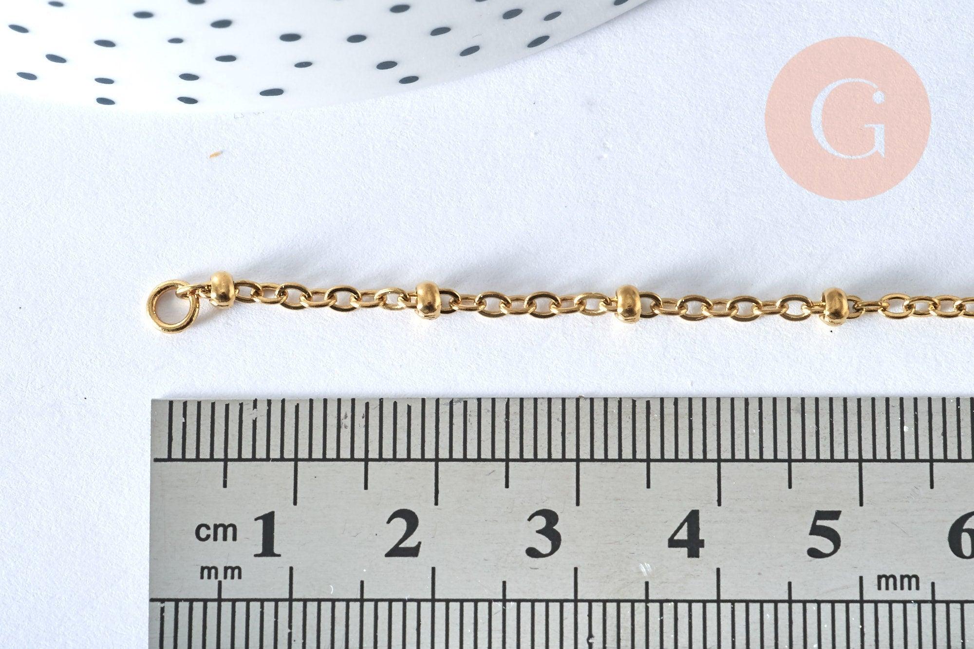 Adopte inmediatamente esta base de pulsera de malla satélite en acero dorado de 14k , ajustable gracias a su extensión y su cadena personalizable con sus dos anillos al final de la cadena para personalizar mediante un colgante de conector.