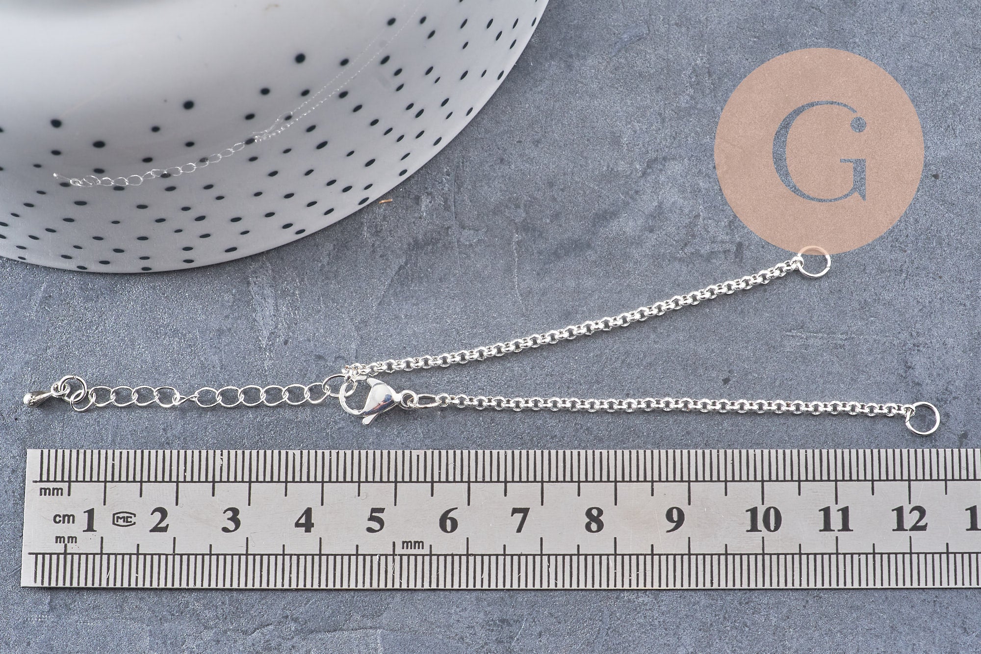 Bracelet maille rolo acier inoxydable argenté 16.5cm, x1 (G10914)