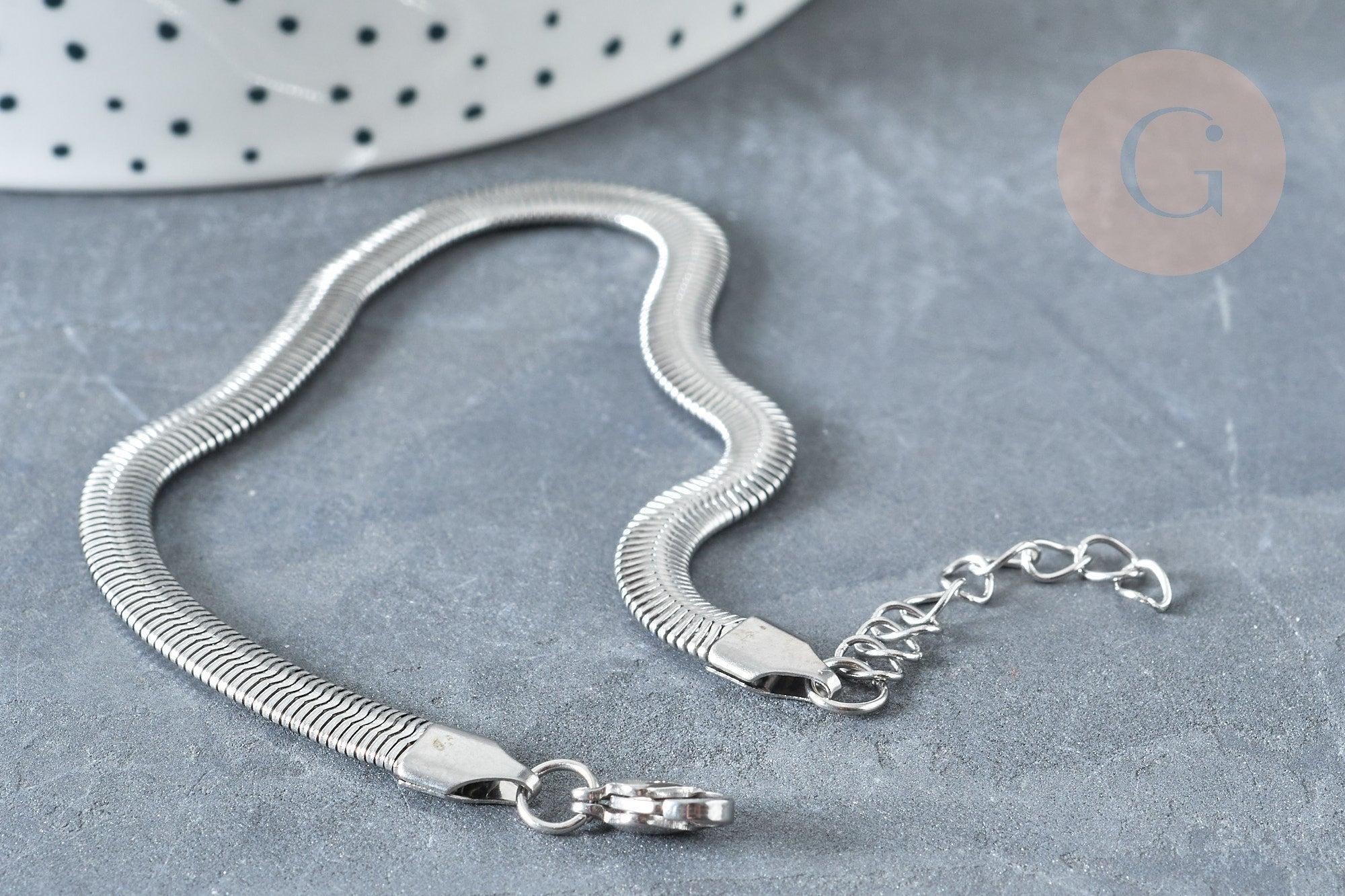 Bracelet maille serpent acier inoxydable platine, x1 (G8178)
