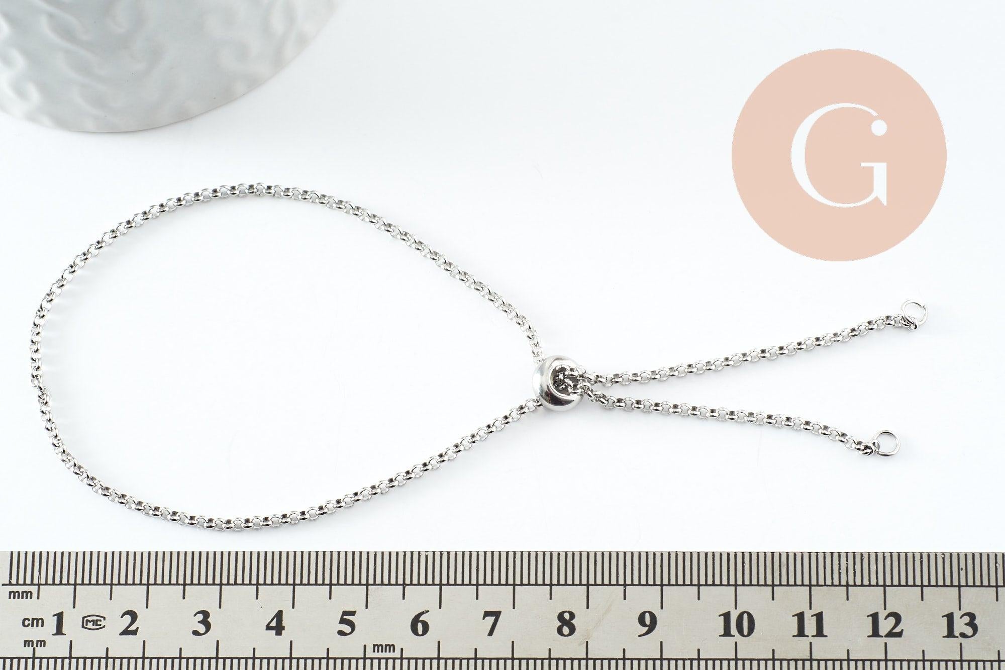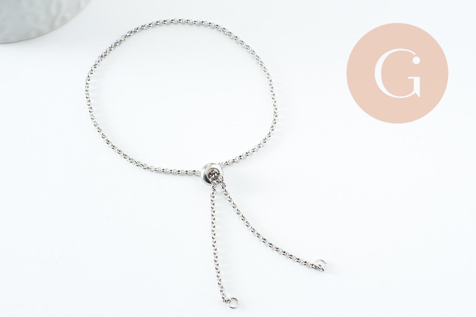 Una delicada pulsera de acero platino, ajustable gracias a su freno y personalizable añadiendo perlas o charms en los dos anillos.