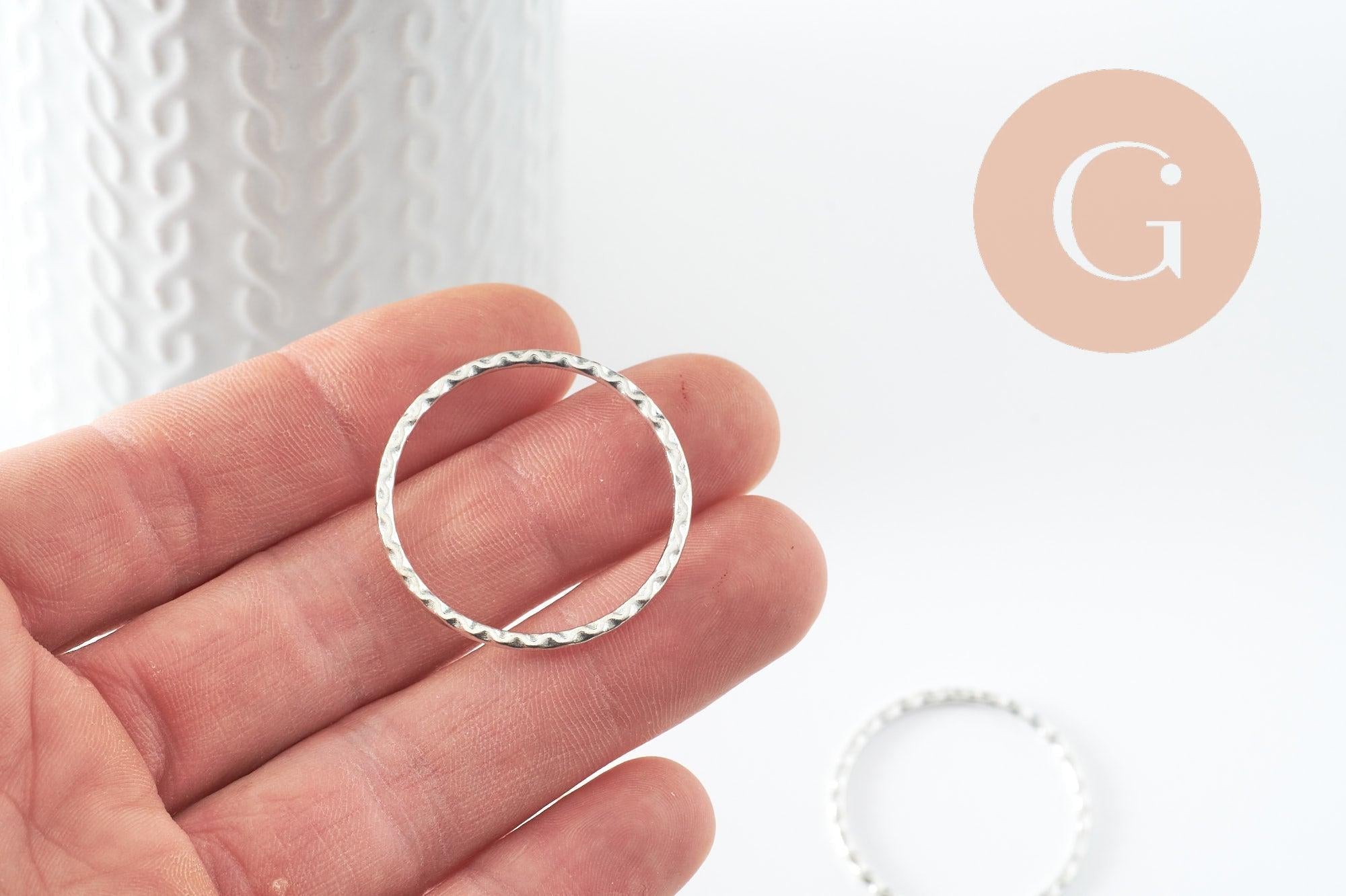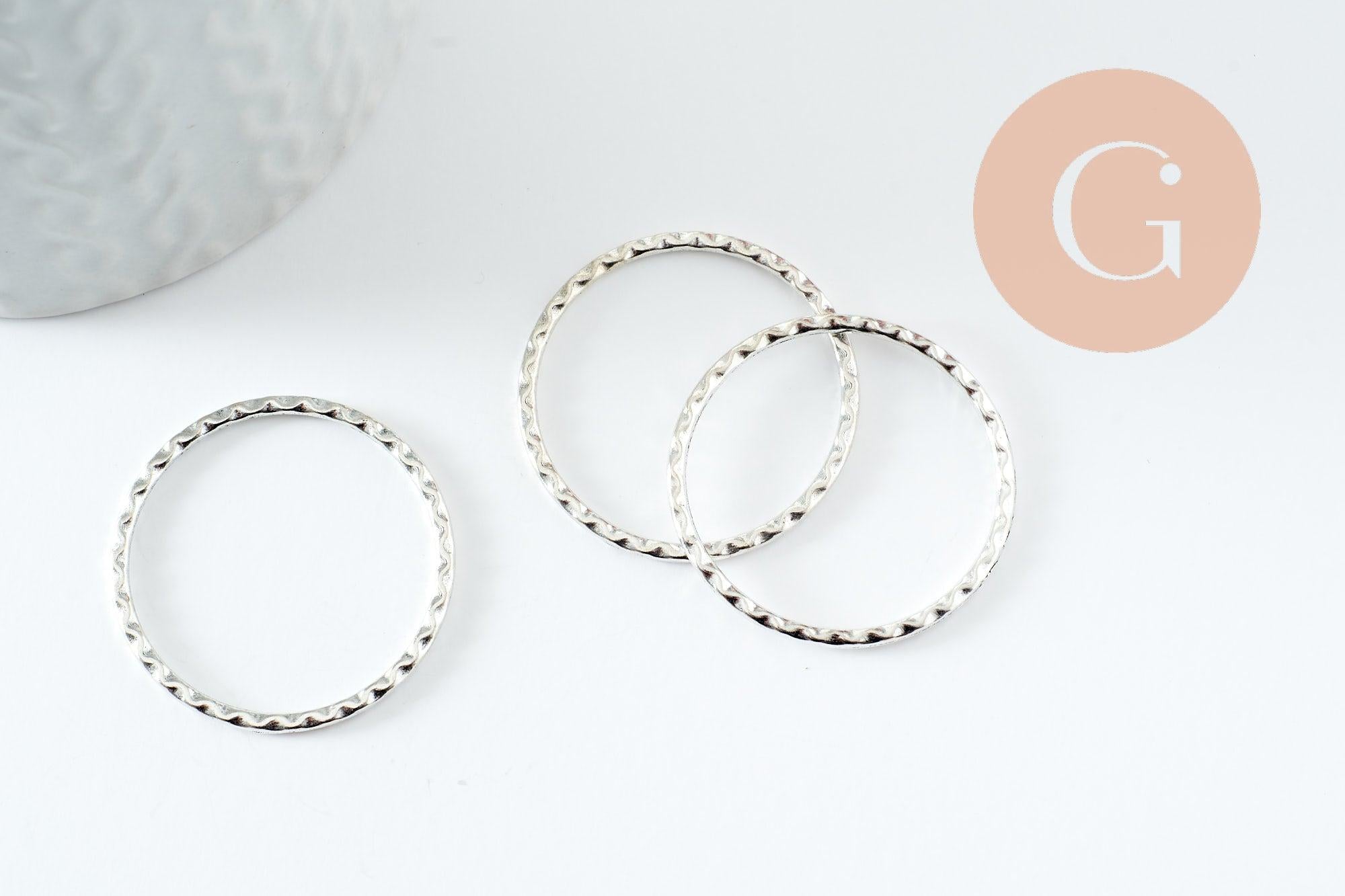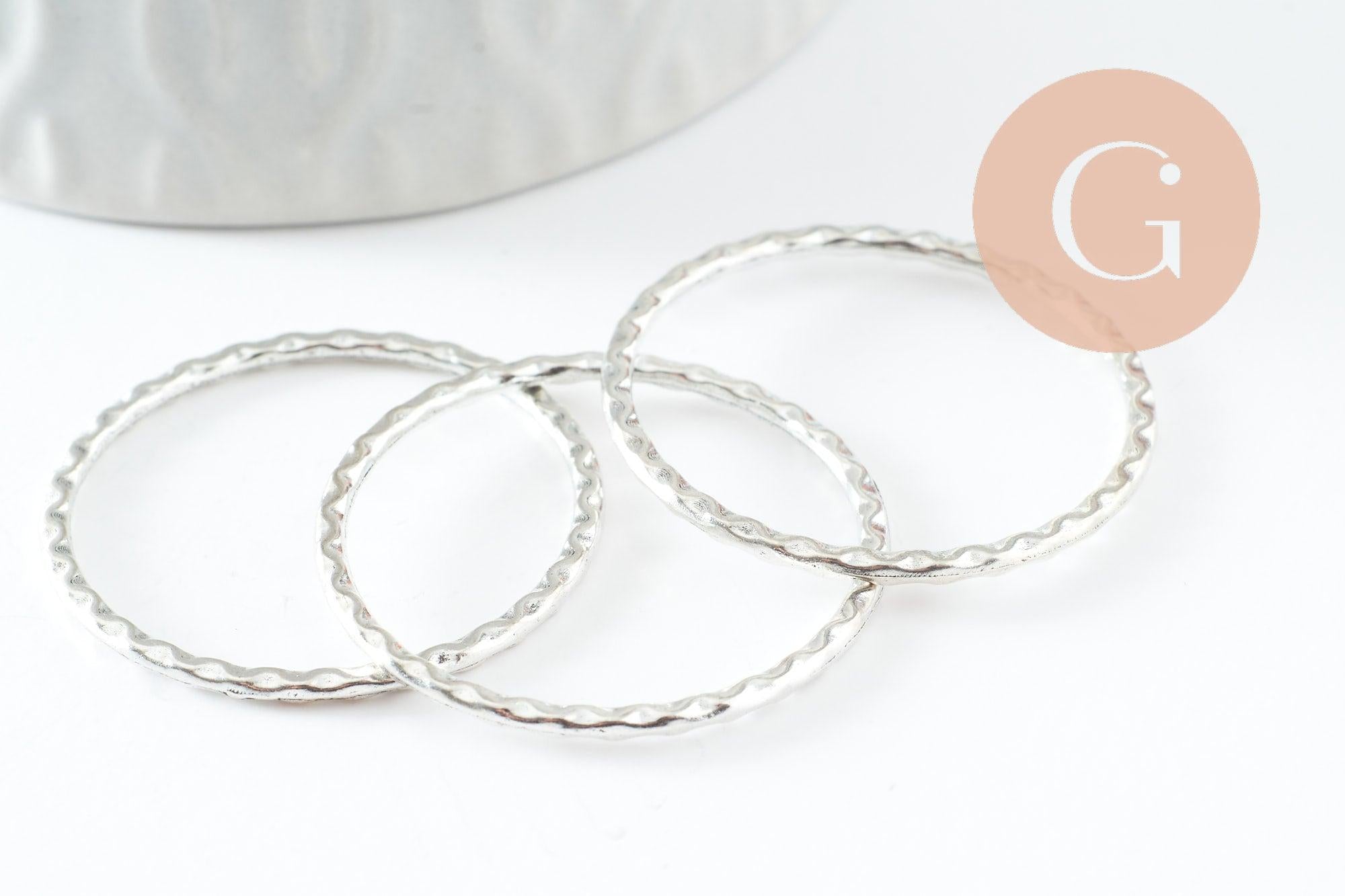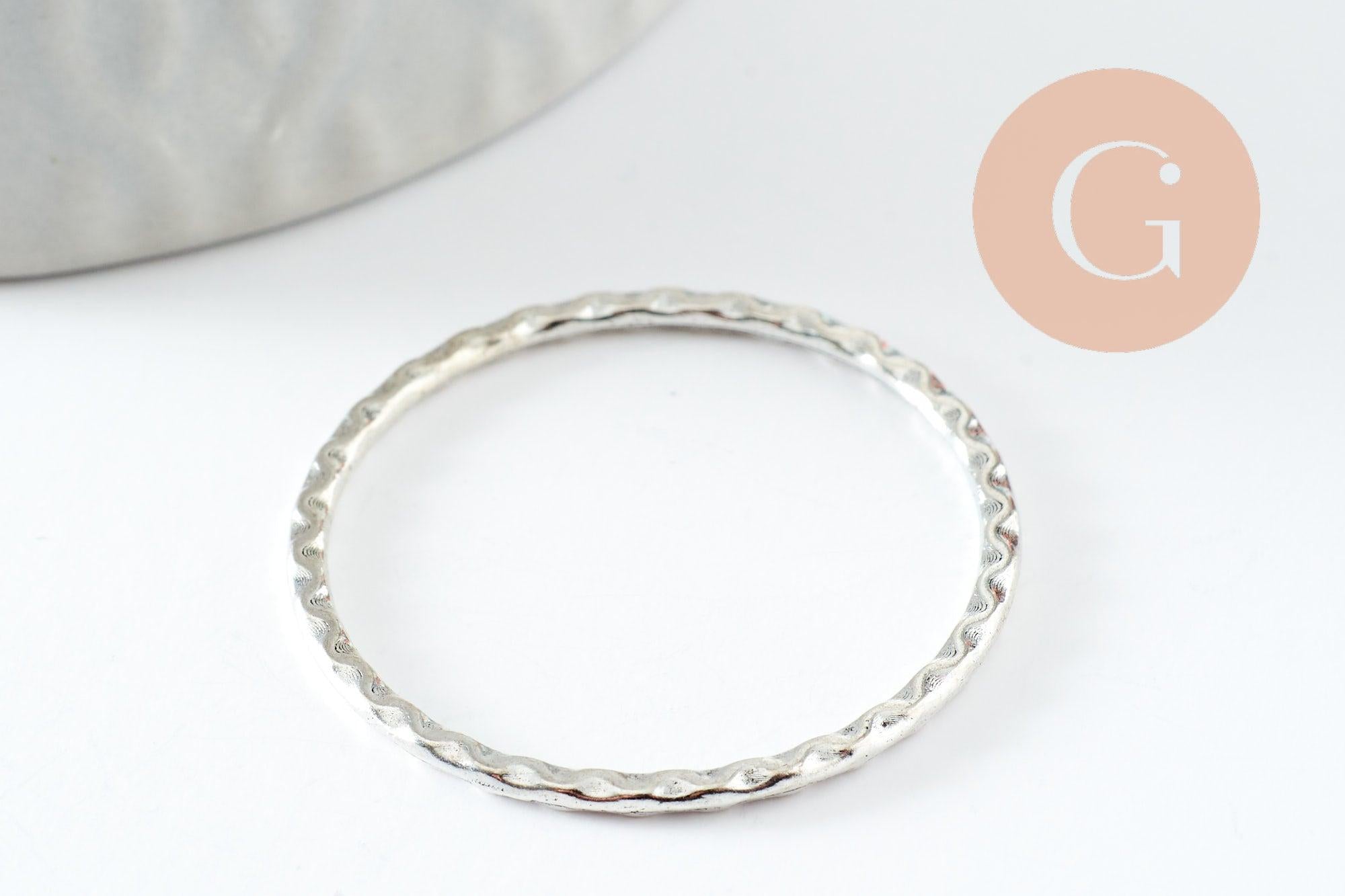 Pendentif connecteur rond zamac argenté strié 30mm, x5 (G9912)