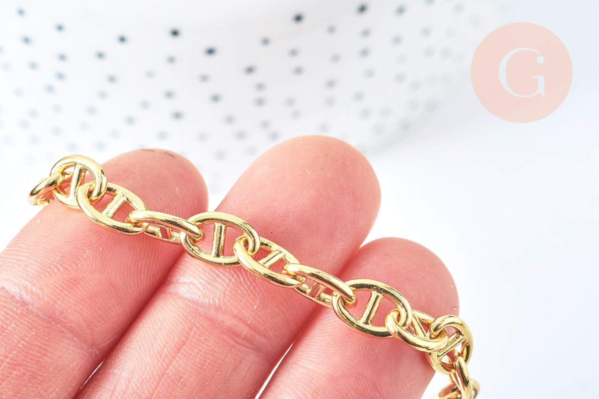 Bracelet chaine maille marine laiton doré 18k 18.5cm, x1 (G6959)