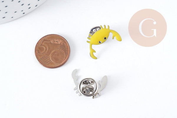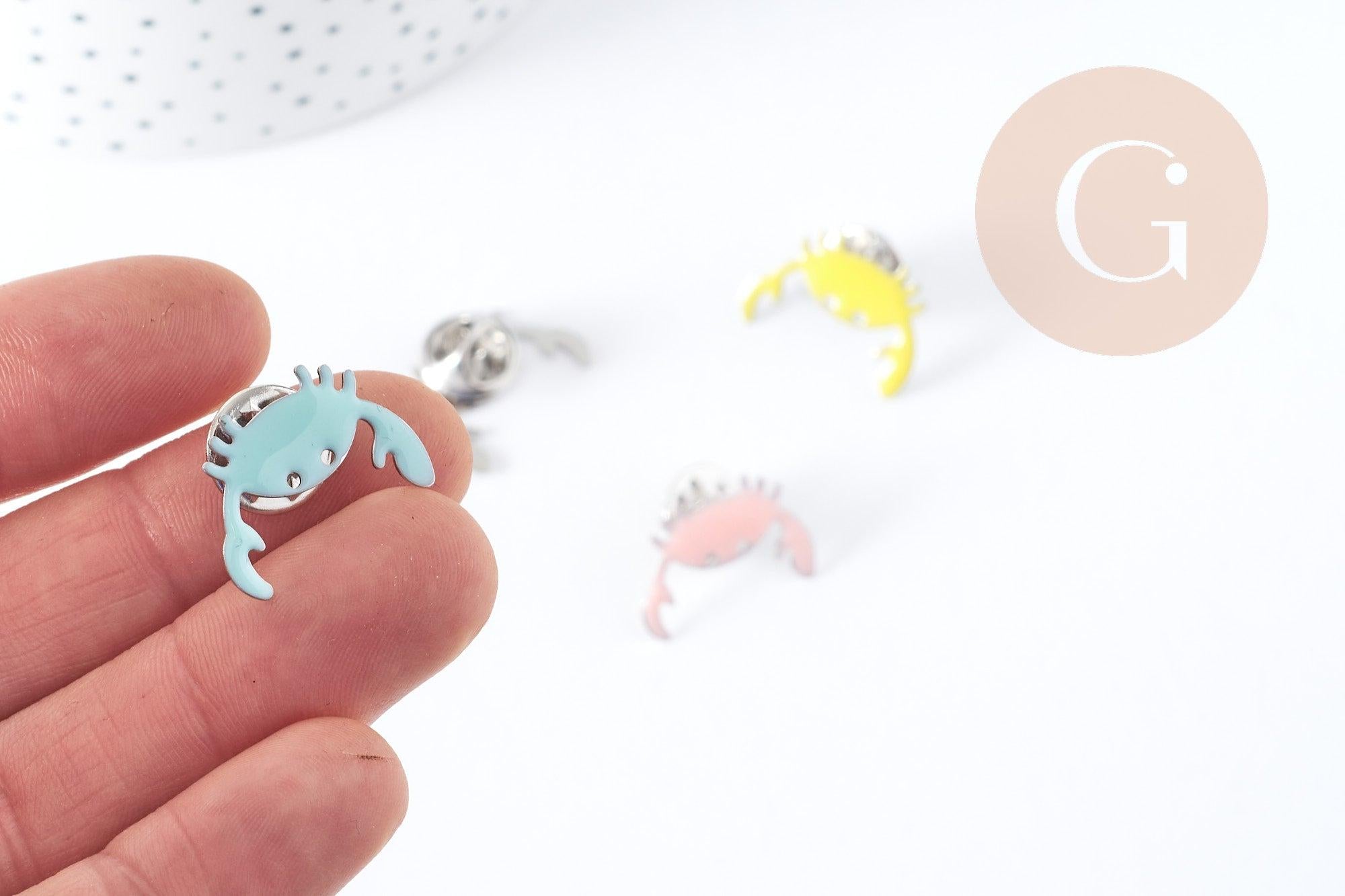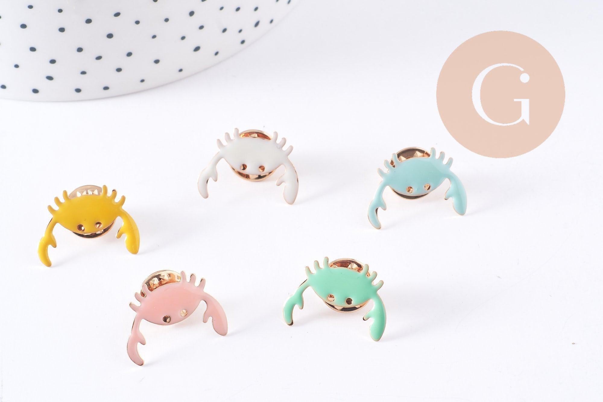 Un divertido pin de cangrejo , en latón bañado en oro, que quedará perfecto en una chaqueta pequeña, una camisa o incluso un abrigo para darle color a la vida cotidiana.