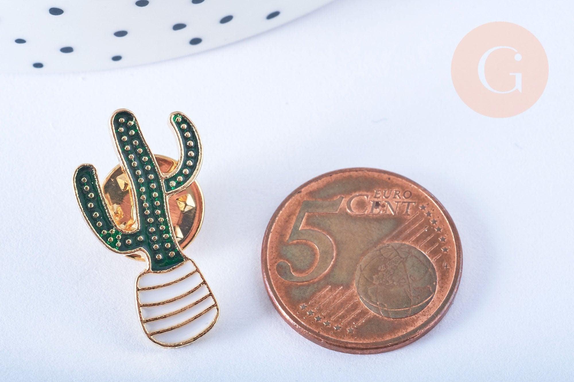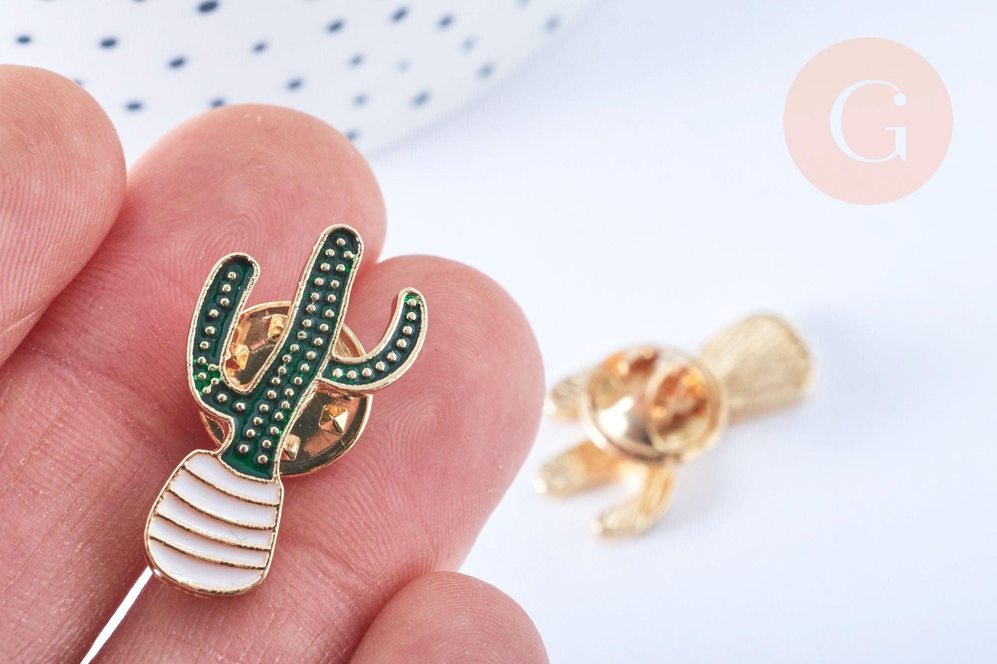 Broche cactus esmalte esmalte oro verde 25x14mm, broche dorado, decoración chaqueta, x1 G6620