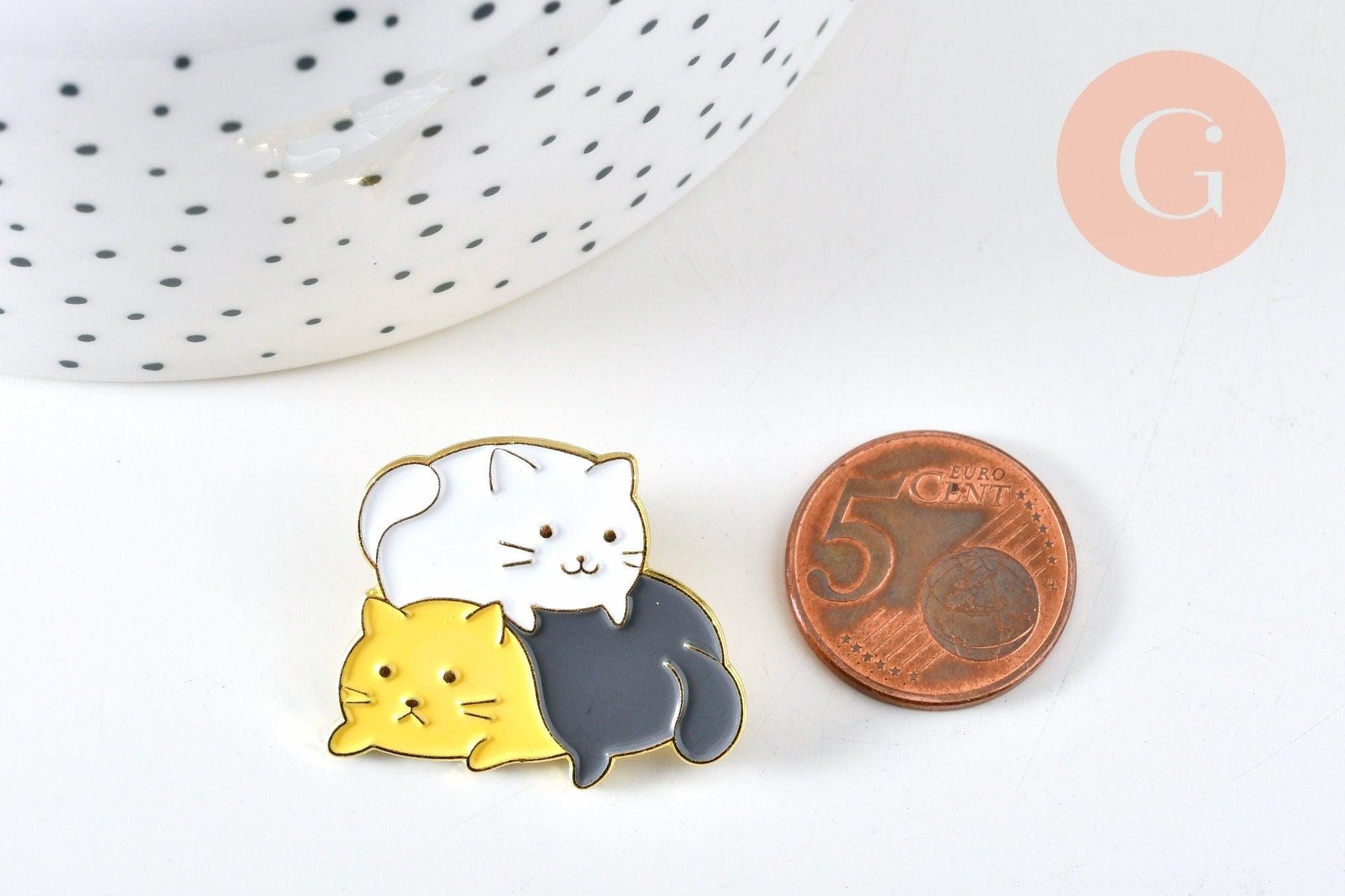 Broche de gato gris, esmalte negro dorado místico Yang blanco y junio, broche dorado, decoración de chaqueta, 30x24,5 mm, x1 G6322