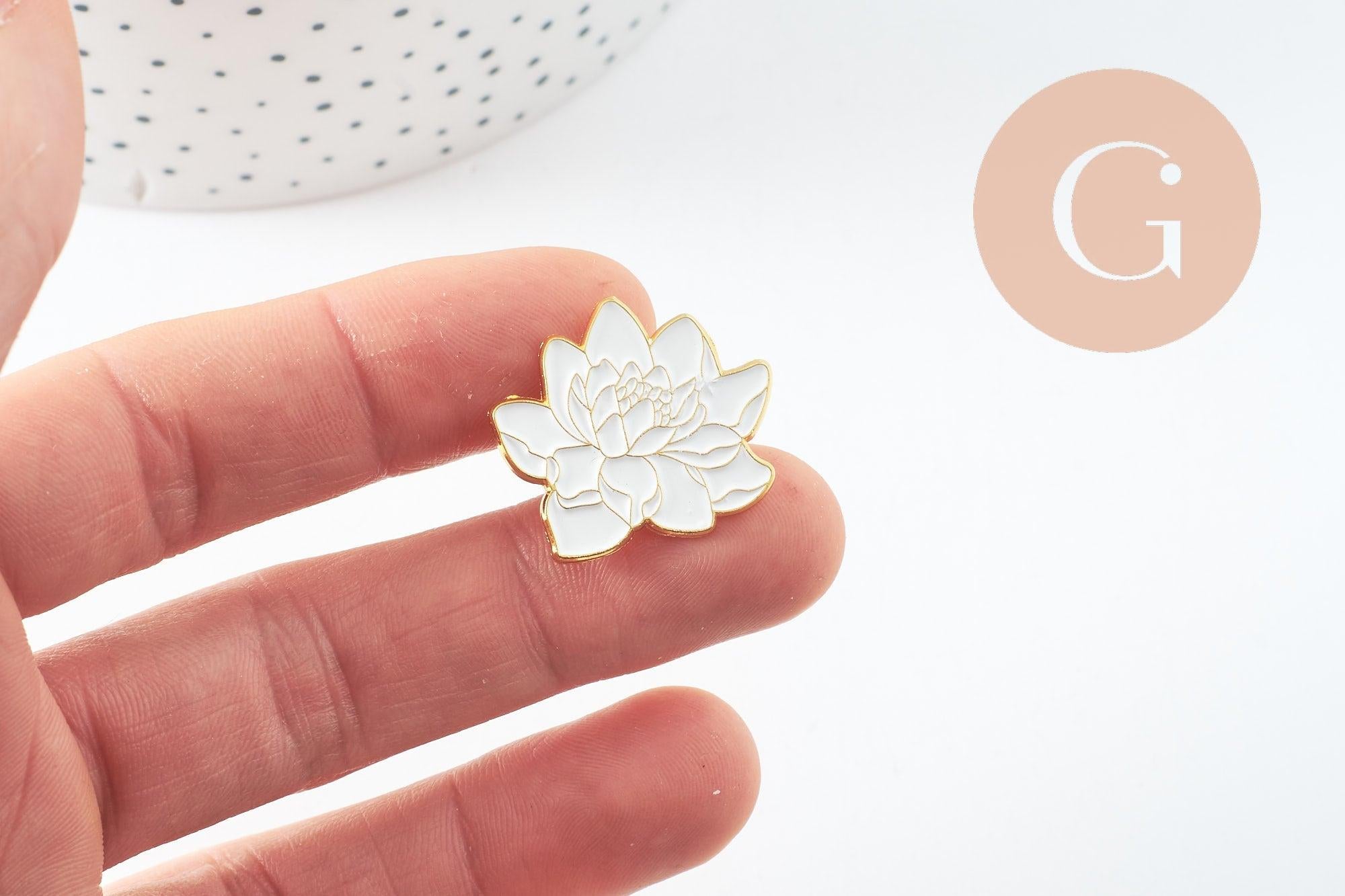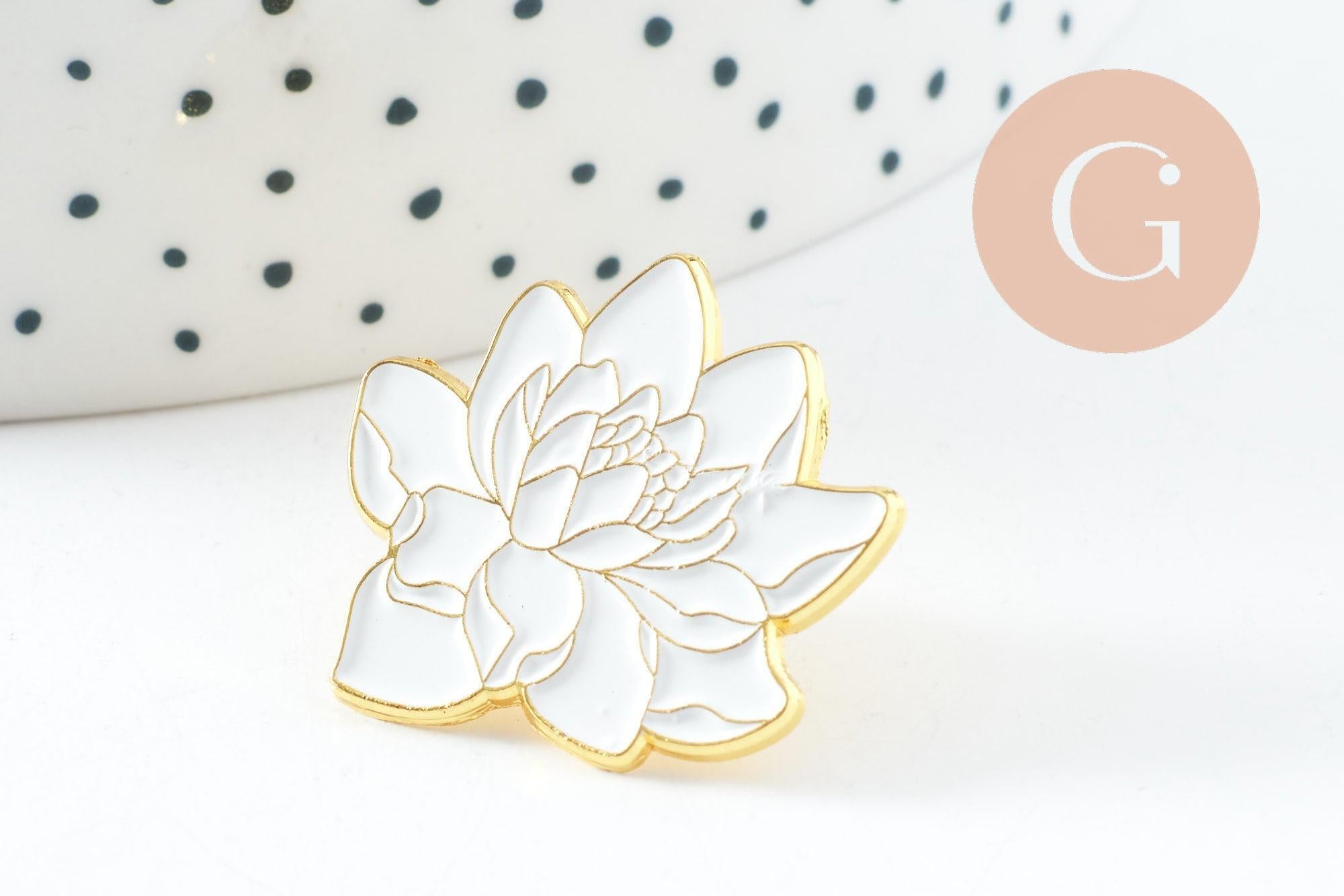 Broche Flores patrón vegetal esmalte dorado, broche dorado, decoración chaqueta, 30x25mm, x1 G5555