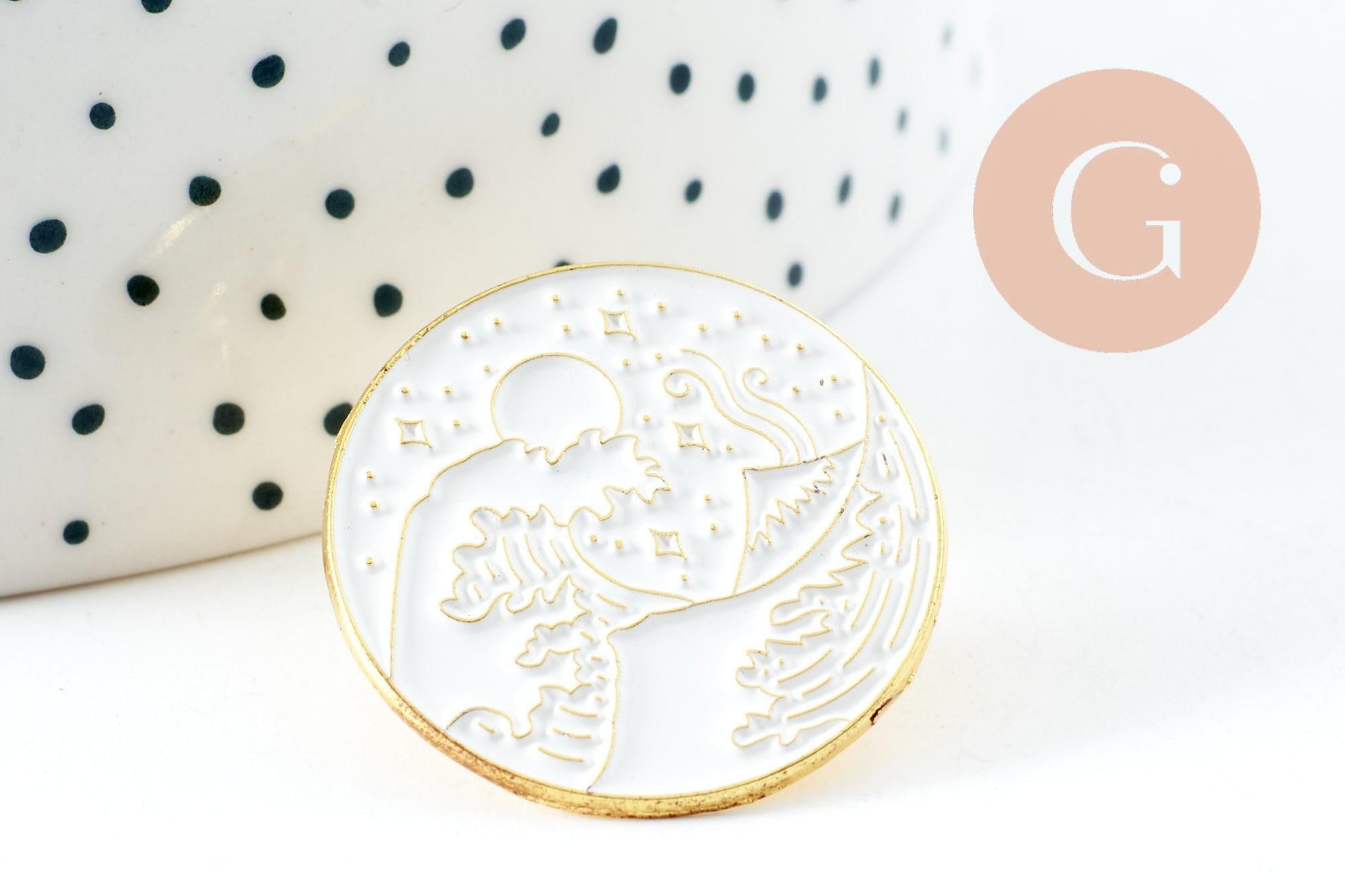 Broche Flores patrón vegetal esmalte dorado, broche dorado, decoración chaqueta, 30x25mm, x1 G5555