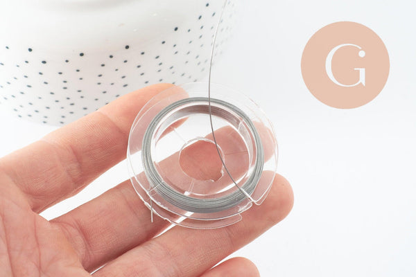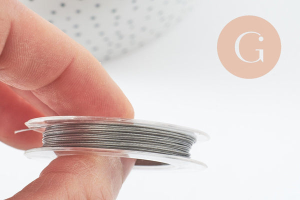 También llamado cable de alambre o “stringing wire”, el cable de cable enfundado está formado por pequeños hilos de acero inoxidable trenzados entre sí y rodeados por una película de nailon, lo que lo hace muy resistente y confiere a tus creaciones una verdadera sujeción.