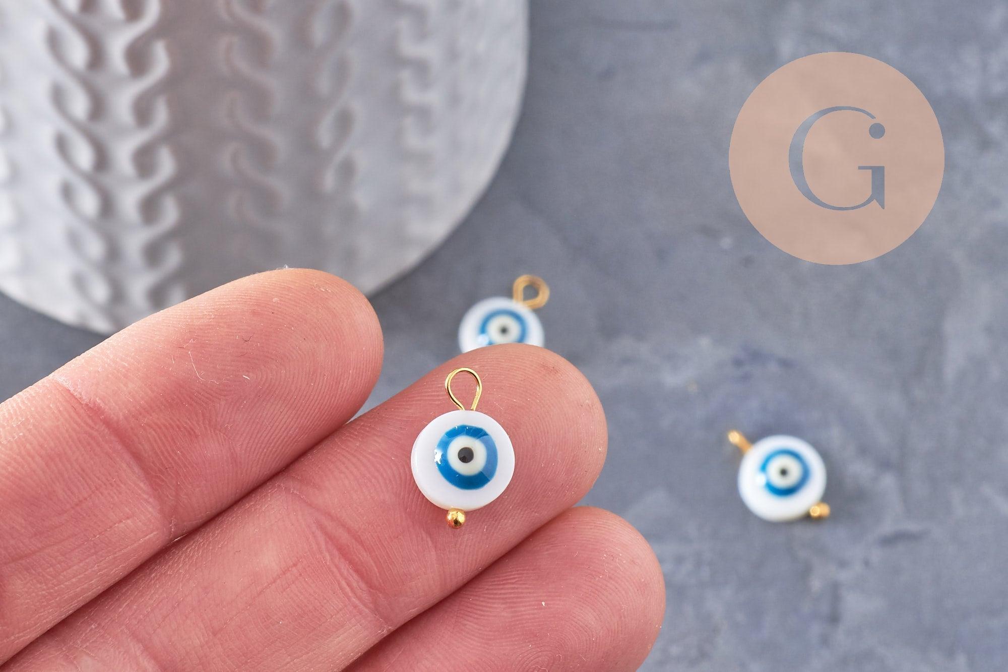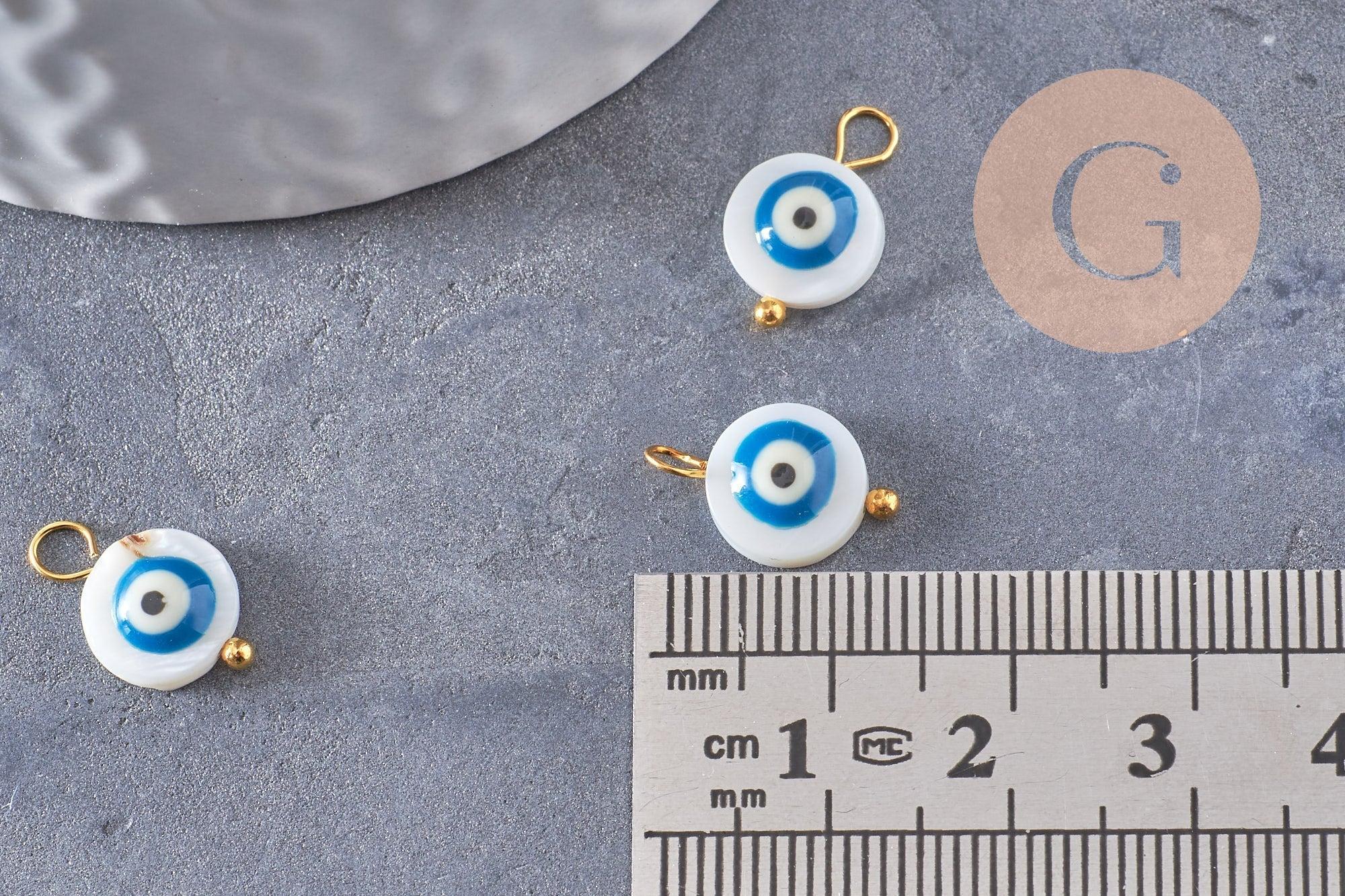 Para personalizar sus joyas y otros accesorios textiles o de piel suave, déjese seducir por este charm de nácar blanco que representa el ojo de la suerte.