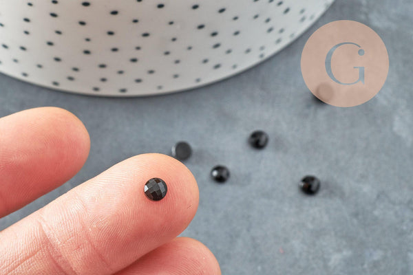 Cabujón redondo de ágata negra facetada, cabujón redondo, ágata natural, cabujón de piedra, piedra natural, 4 mm, piedra natural