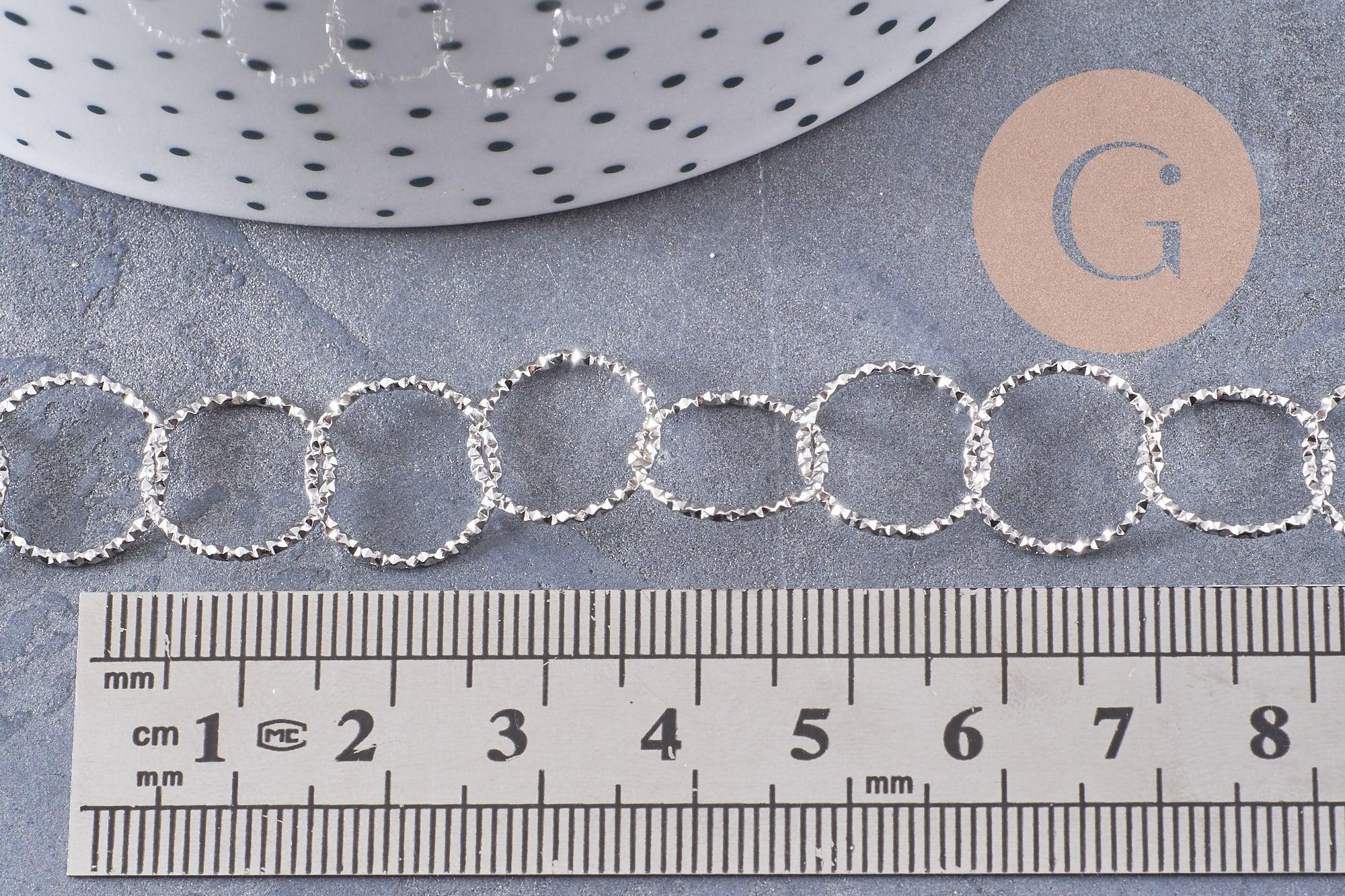 Cadena de malla redonda grande texturizada de acero inoxidable 304 platino de 13 mm, x1 metro (G10066)