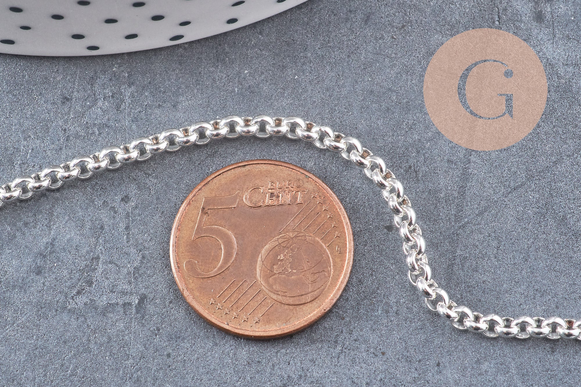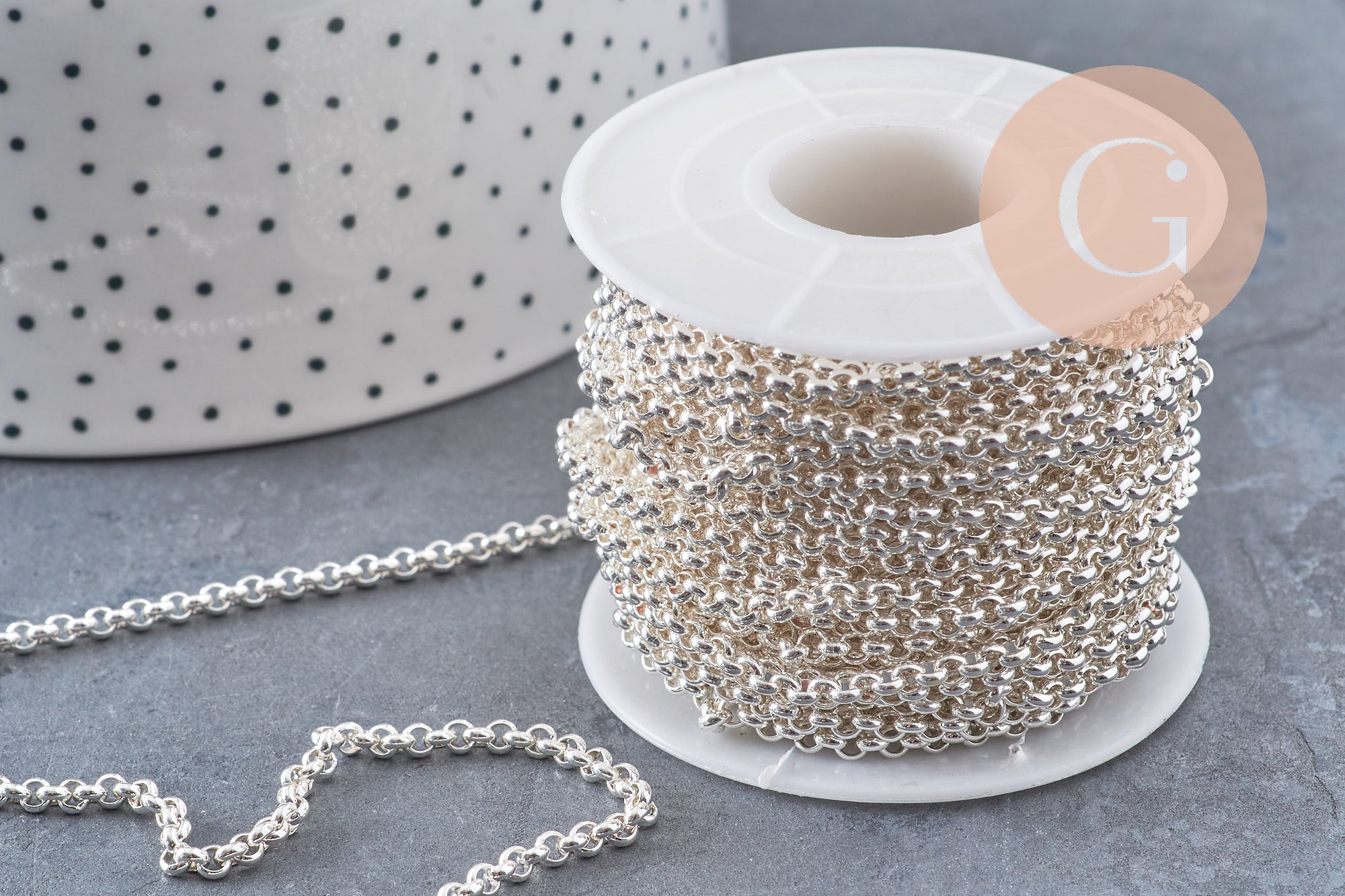 Cadena de eslabones rolo de acero inoxidable 304 plateado, 3 mm de espesor, 1 metro (G10866)