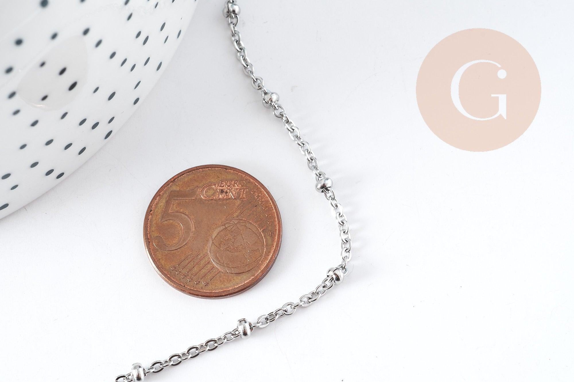Dale un toque moderno y refinado a tus joyas DIY con esta cadena satélite de acero inoxidable 304 color platino . Fina y elegante, es ideal para crear joyas delicadas y a la moda, resistente al paso del tiempo y apta para todo tipo de piel.