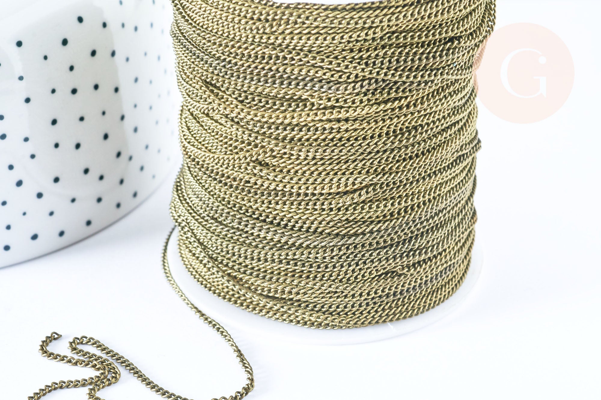 EP Cadena plana de latón bronce de 3,7 mm, malla sin soldar, suministros para crear joyas de bronce, carrete de 92 m G6938