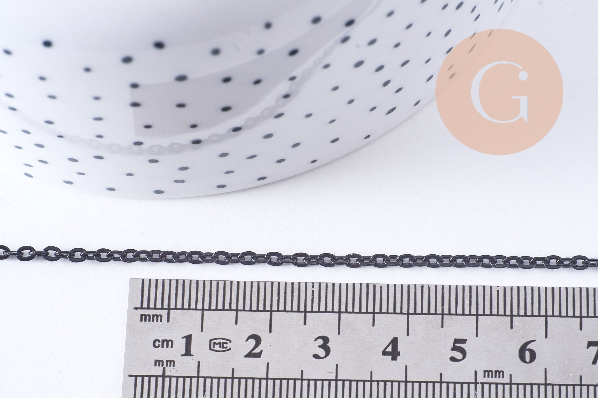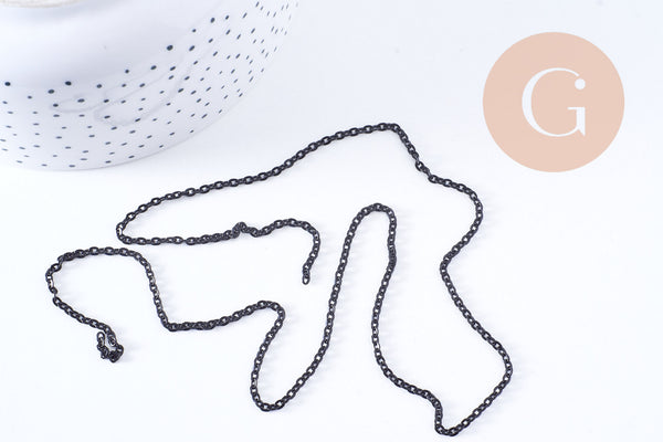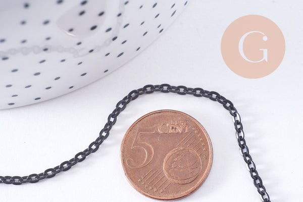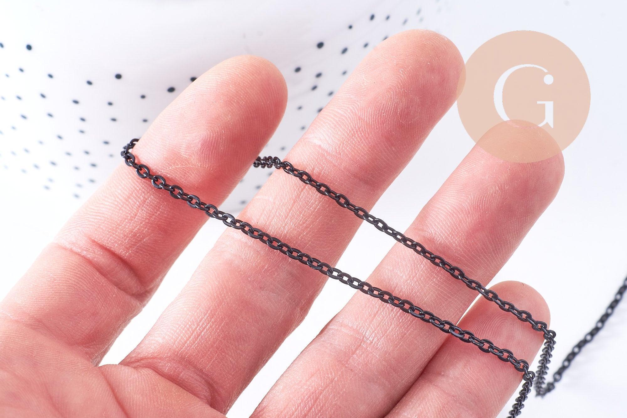 Dale un toque moderno y audaz a tus creaciones con esta cadena barbada de hierro negro intenso . Su fina malla de estilo industrial chic combina a la perfección con colgantes, dijes o perlas naturales para crear joyas únicas.
