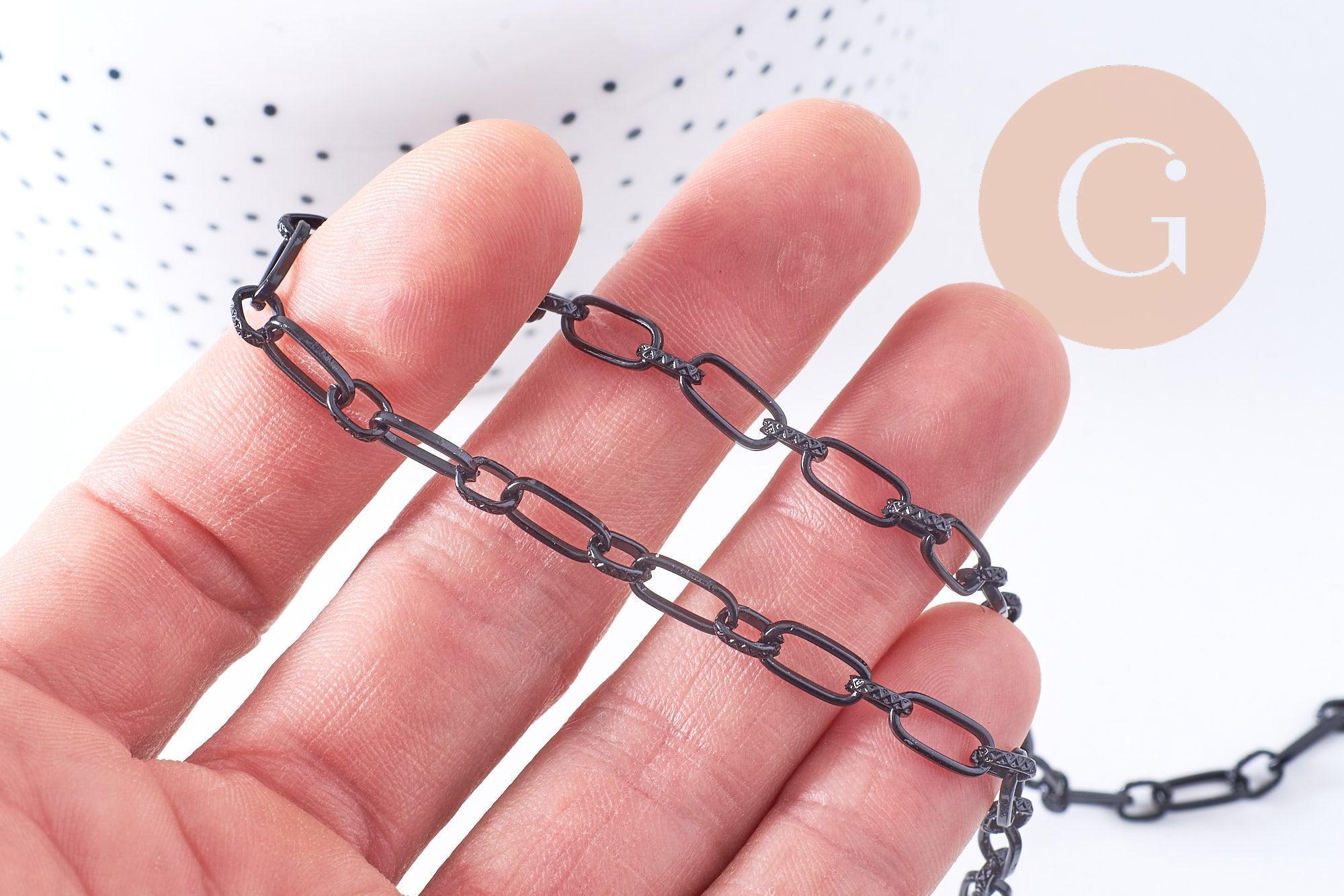 Cadena de malla rectangular de hierro negro de 10 mm, 1 metro (G1394)