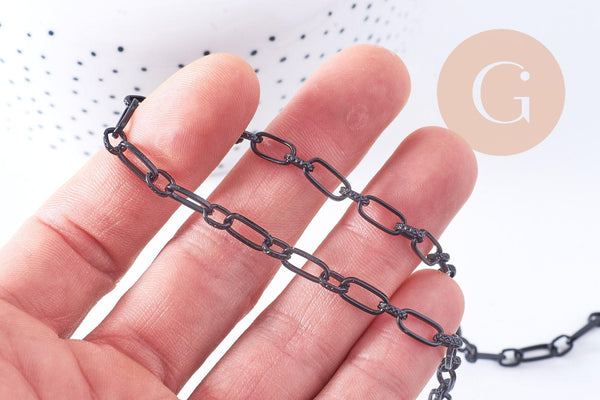 Chaine maille rectangle fer noir 10mm, 1 metre (G1394)