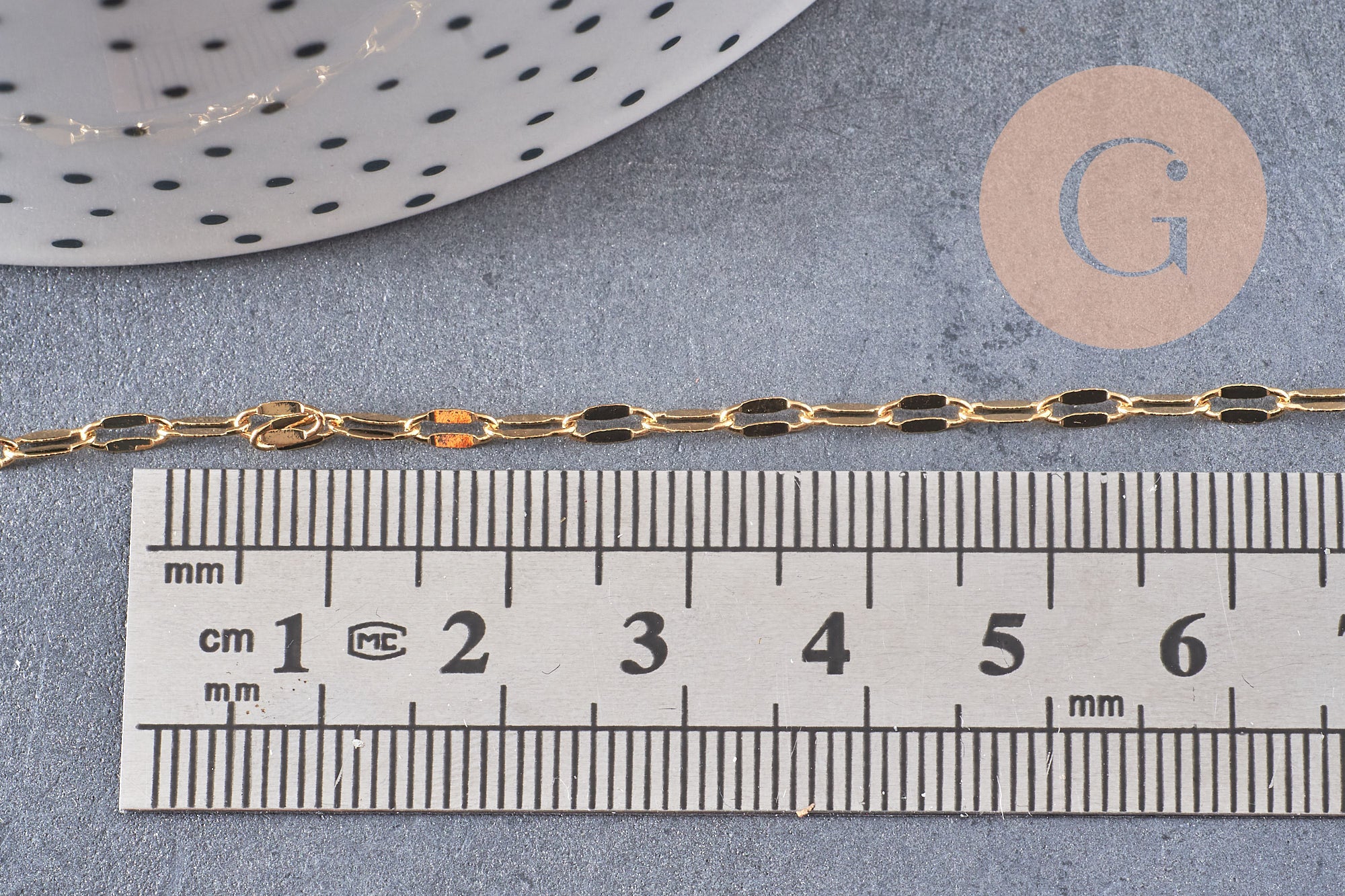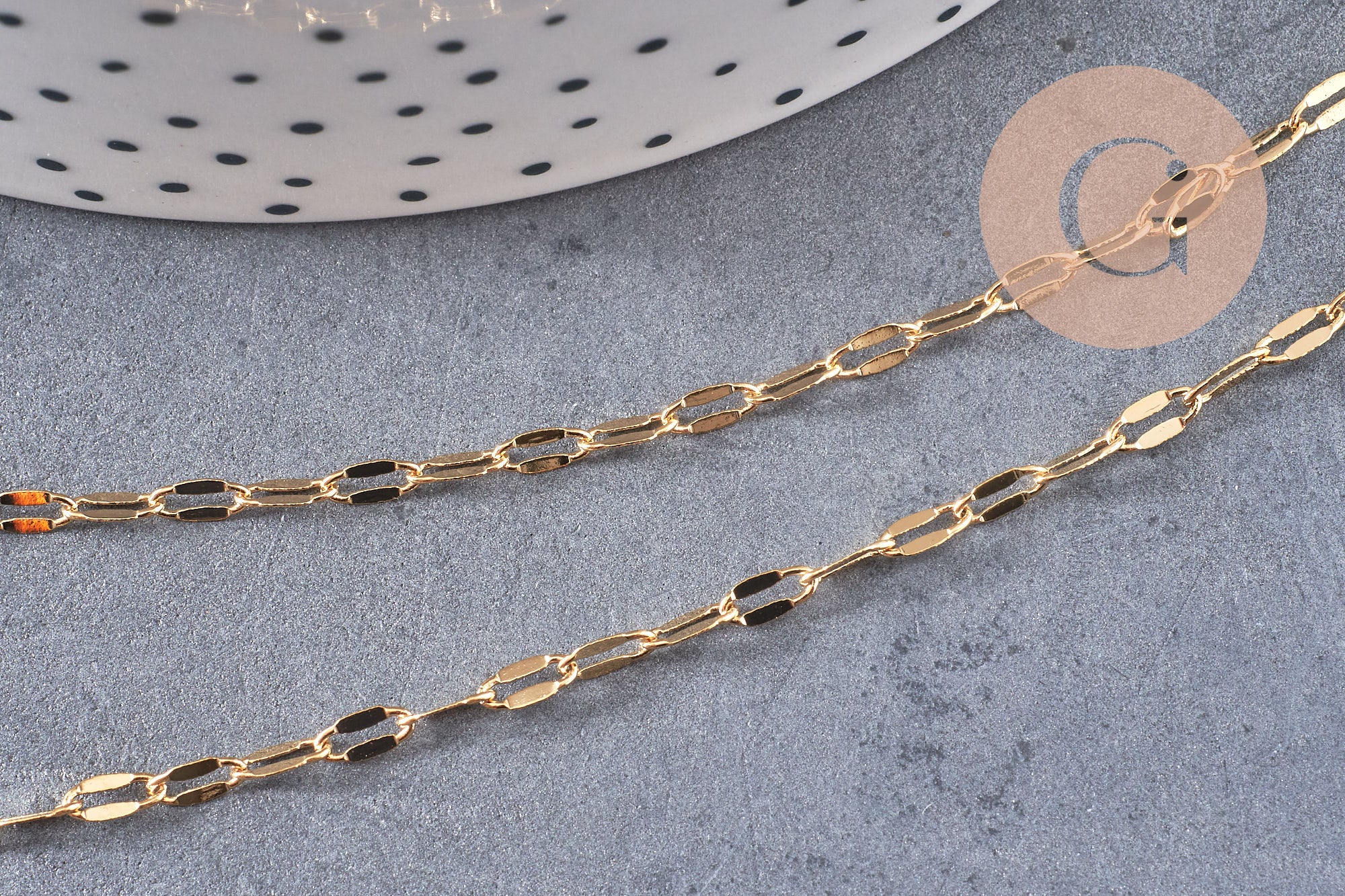 Para realizar rápidamente tus joyas, Gingerily te ofrece 1 metro de esta fina cadena bañada en oro de 14 quilates y 0,25 micras de espesor.