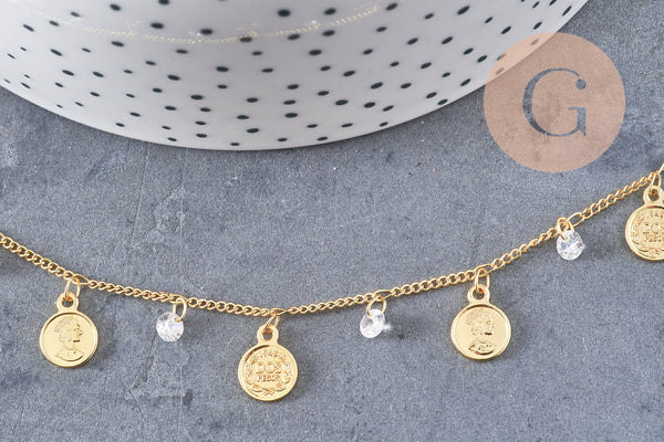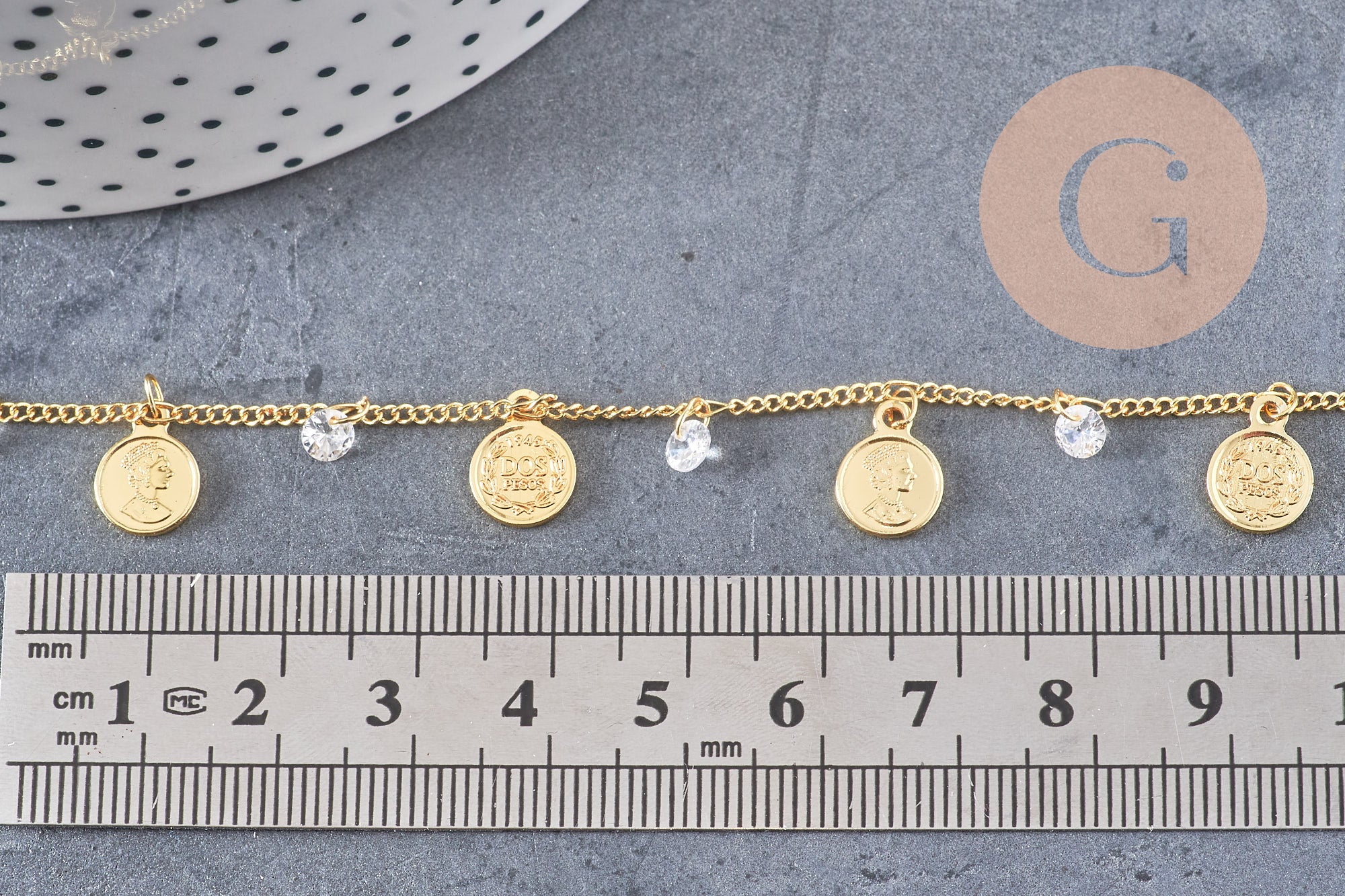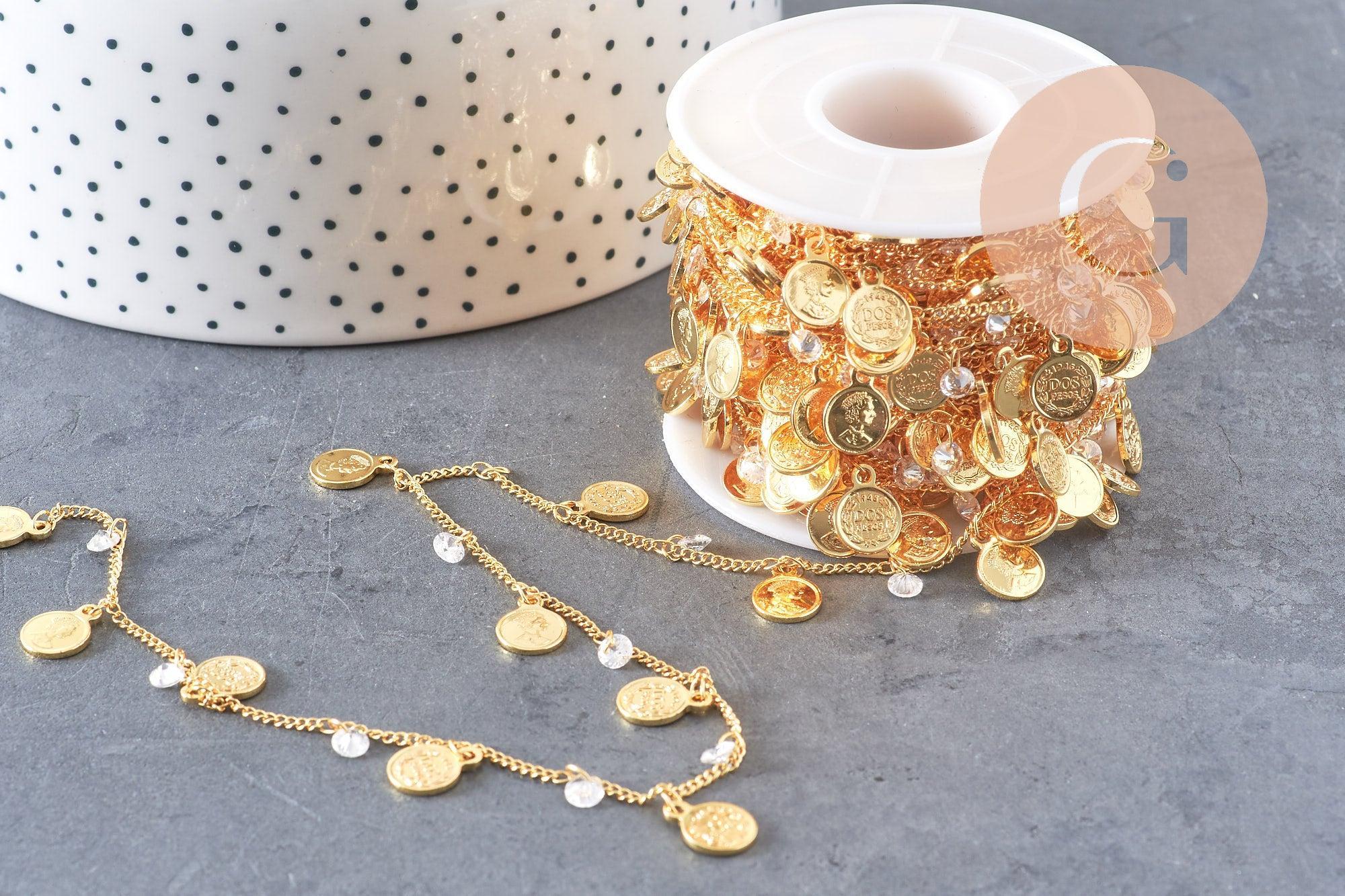Cadena de oro de 18 quilates con monedas de circonio, suministros creativos, cadena de oro elegante para la creación de joyas, 1 metro, 1,5 mm