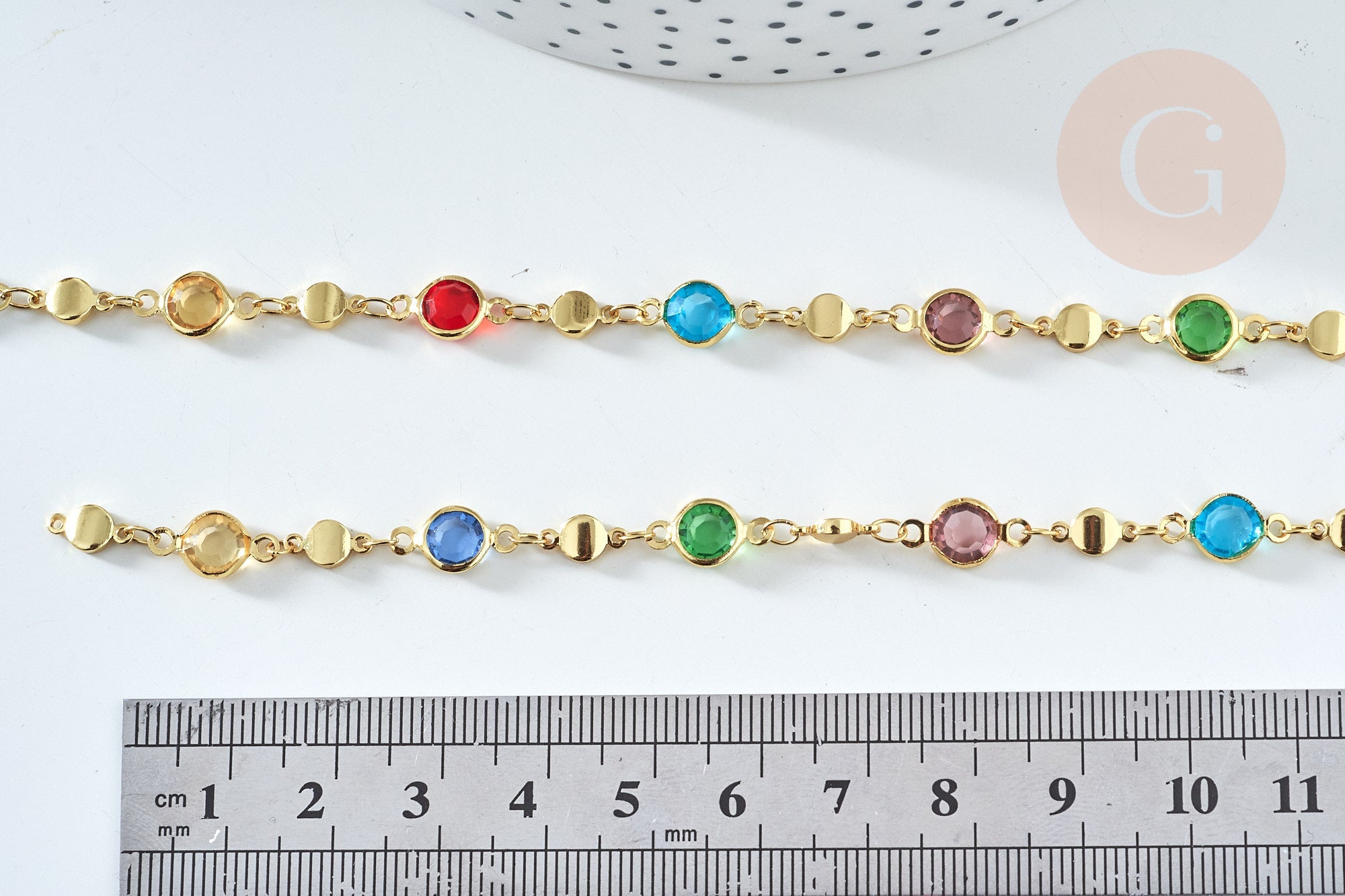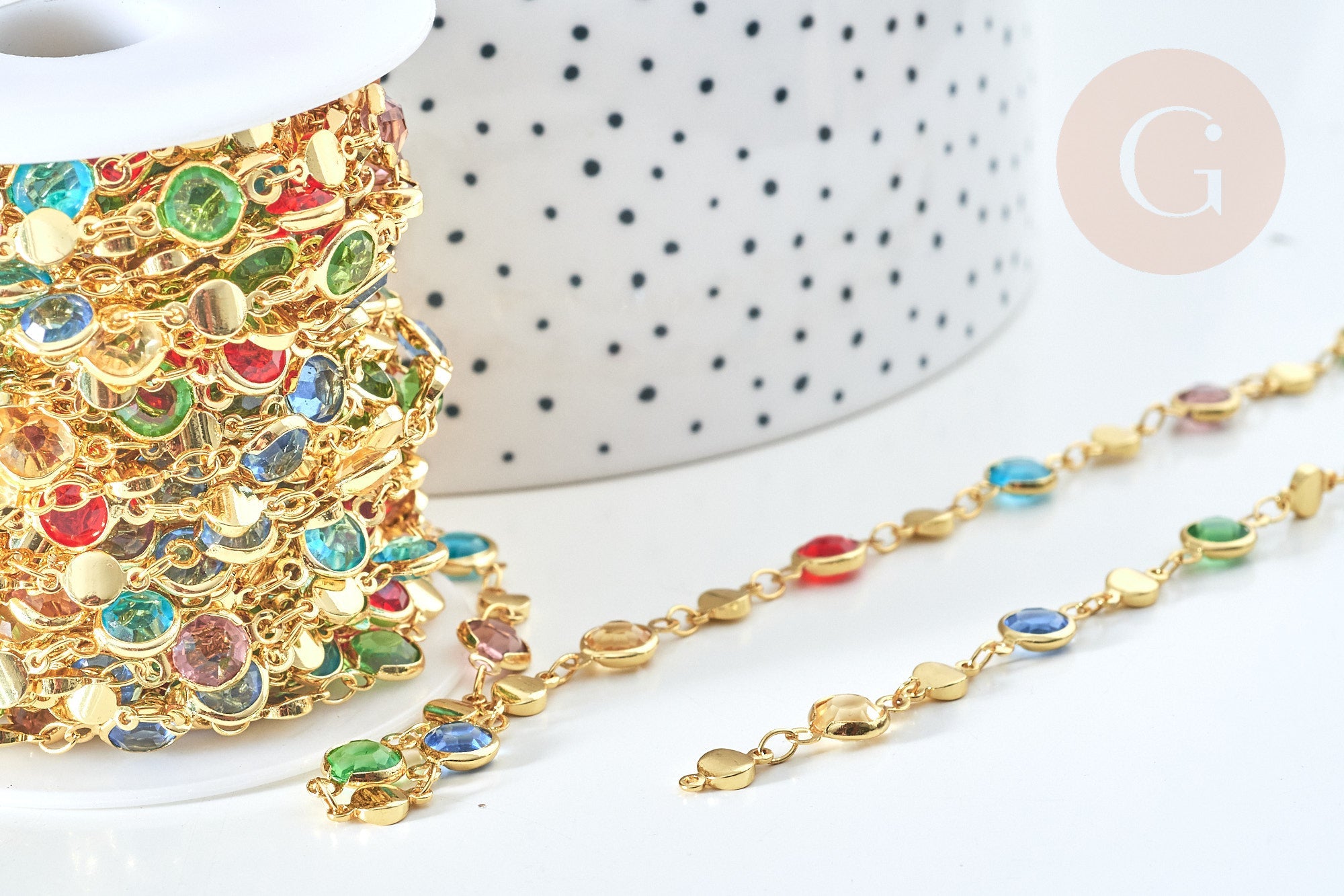 Cadena soldada con cuentas de vidrio, latón dorado, color mixto, 13 mm, creación de joyas de cadena de collar, x 50 cm G7823