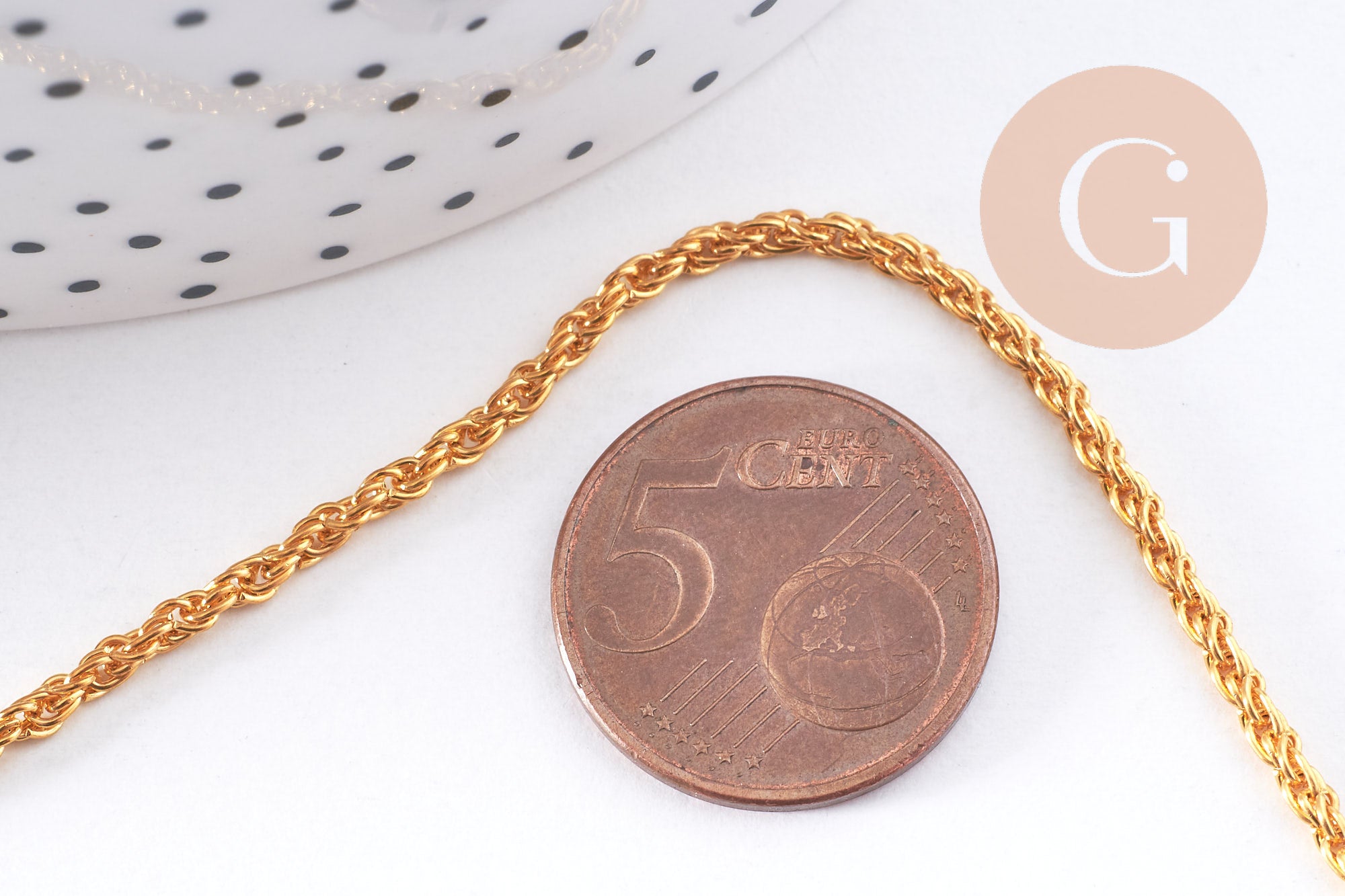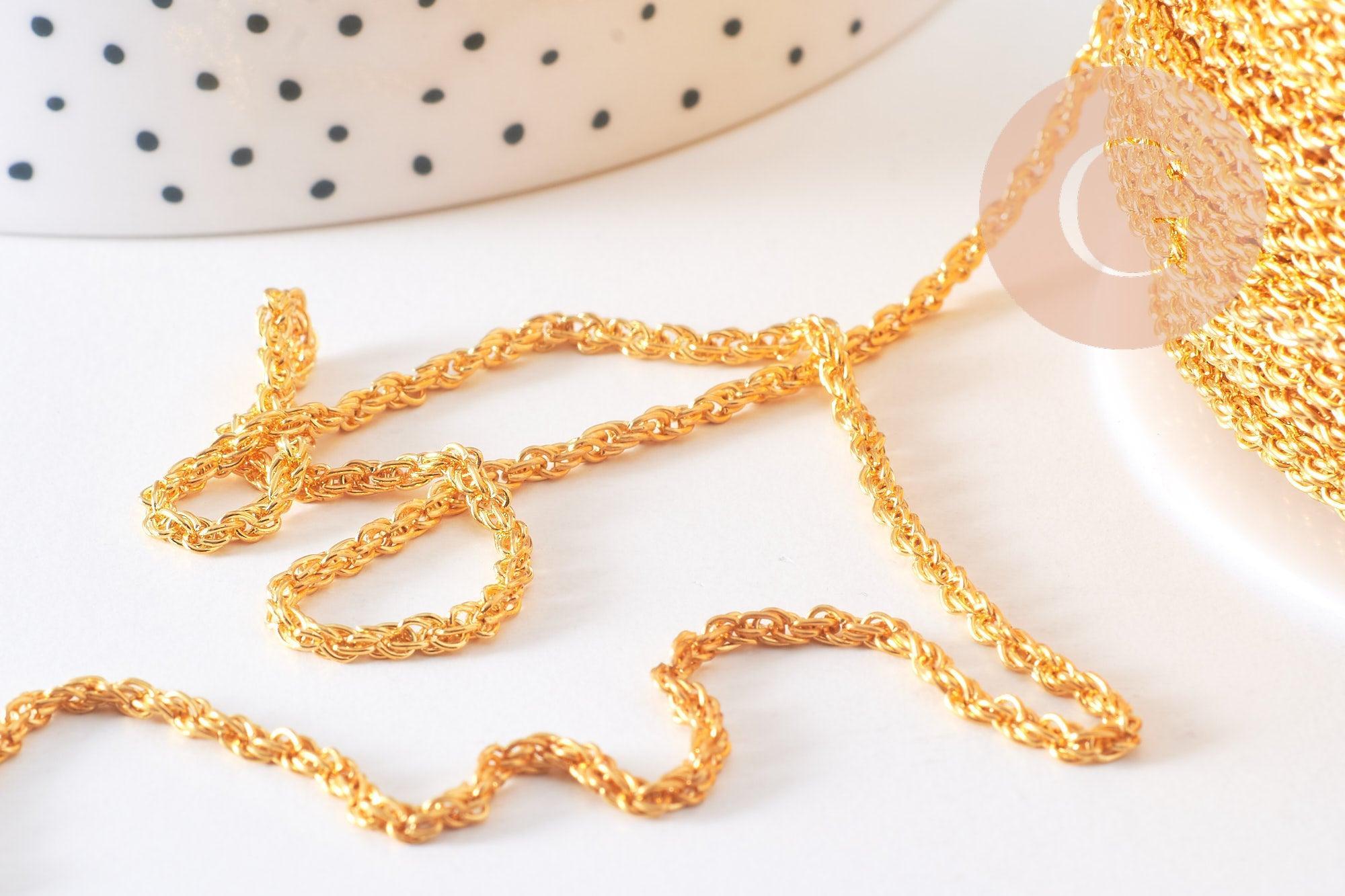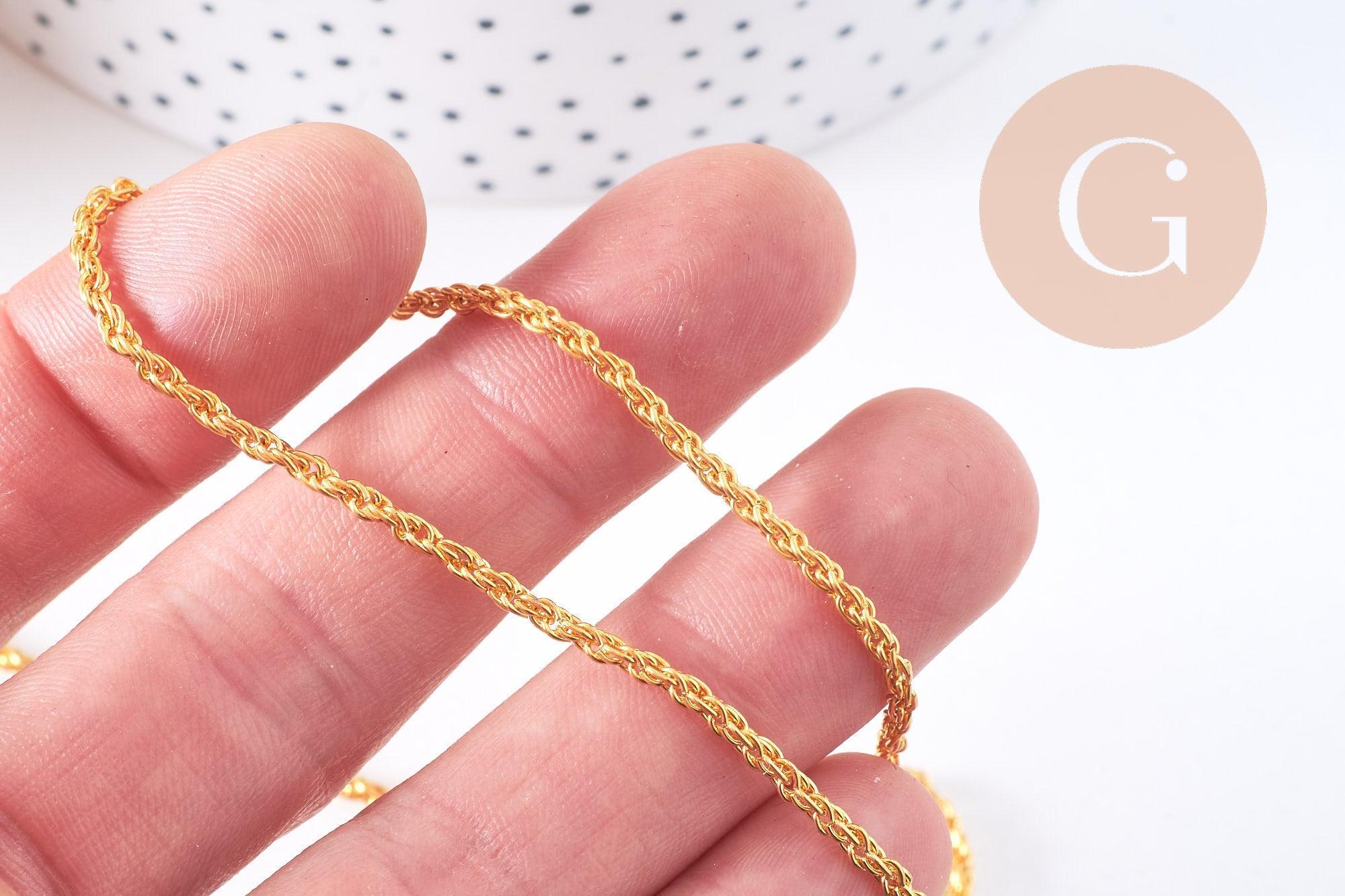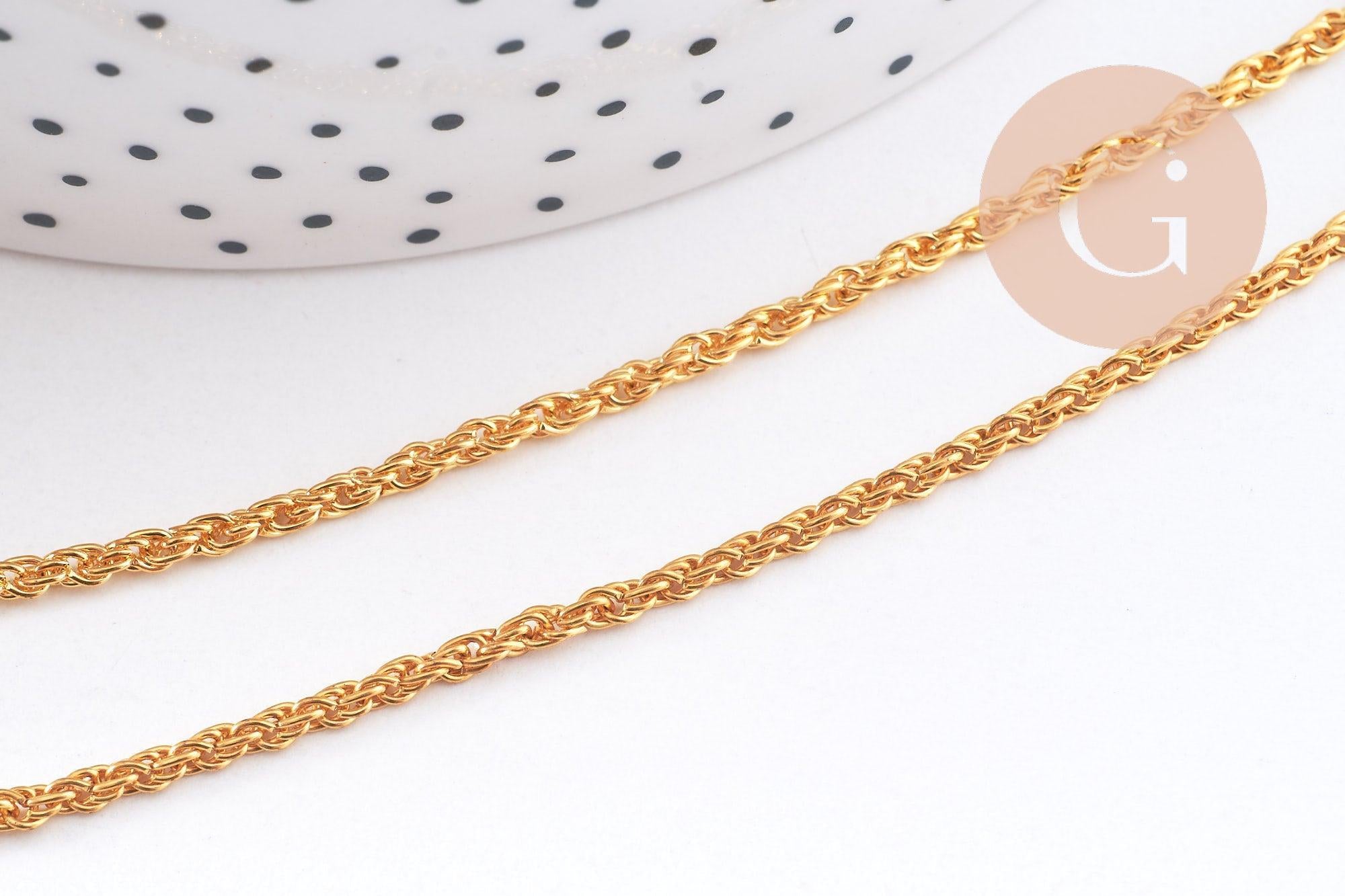 Dale un toque de elegancia a tus creaciones con esta cadena de hierro trenzado bañada en oro . Su malla fina y brillante es ideal para crear joyas delicadas, modernas y refinadas. Se vende por metro y se adapta a todas tus necesidades de bricolaje.